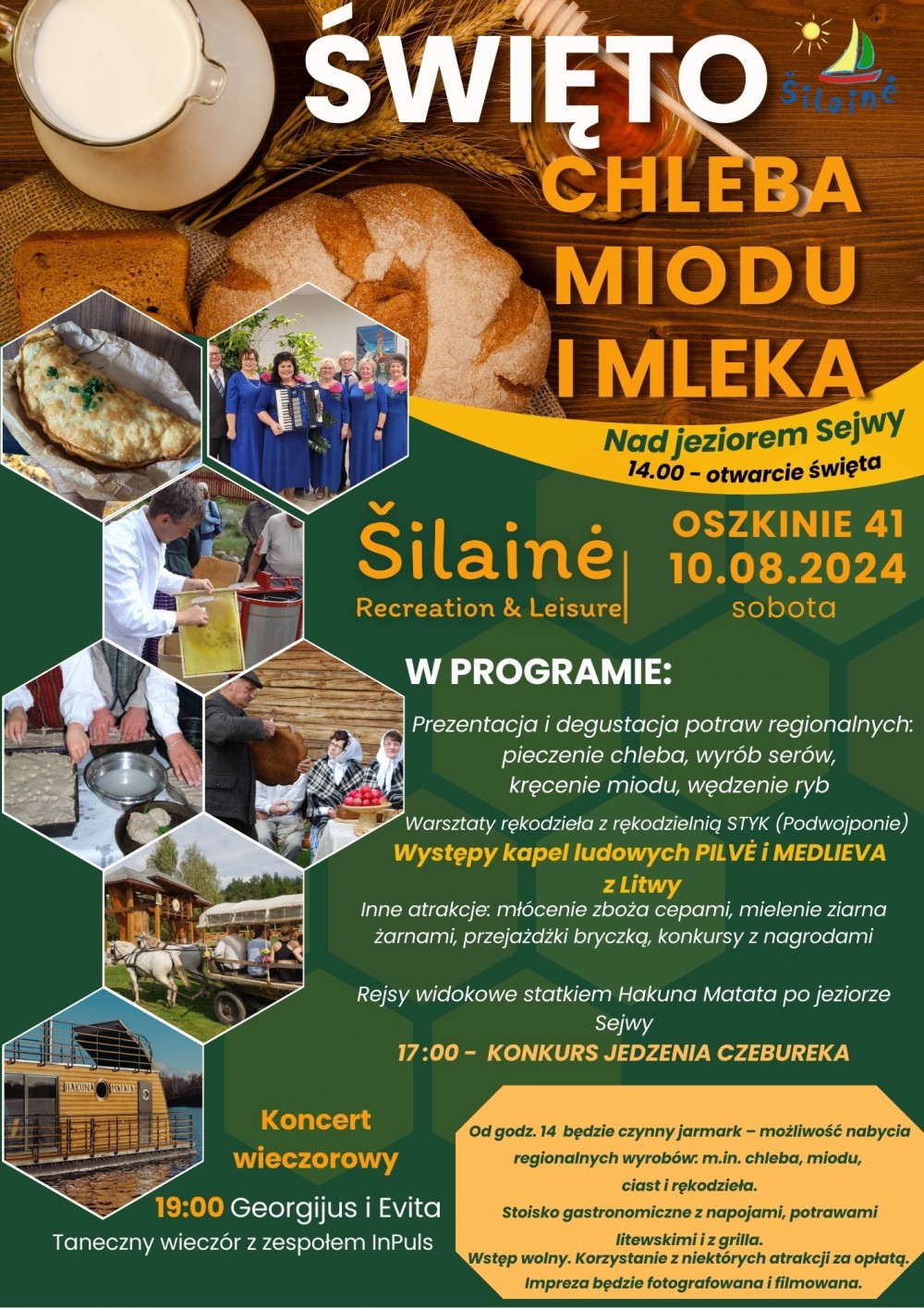 Pierwszą imprezą, zaplanowaną już na sobotę, 10 sierpnia br. będzie już 40. Święto Chleba, Miodu i Mleka W Ośrodku Rekreacyjno - Wypoczynkowym w Szilaine, k.Puńska. Początek o godz. 14.00, a od 19.00 koncert plenerowy.