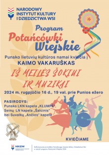 Nowością będzie organizowana przez Dom Kultury Litewskiej, z inicjatywy Narodowego Instytutu Kultury i Dziedzictwa Wsi, potańcówka wiejska przy jeziorze Punia. Będzie miała miejsce w piątek, 16 sierpnia br. Początek o godz. 19.00. Do tańca zagrają kapele z Puńska oraz Suwałk.