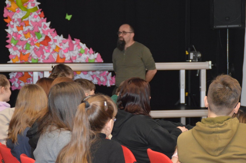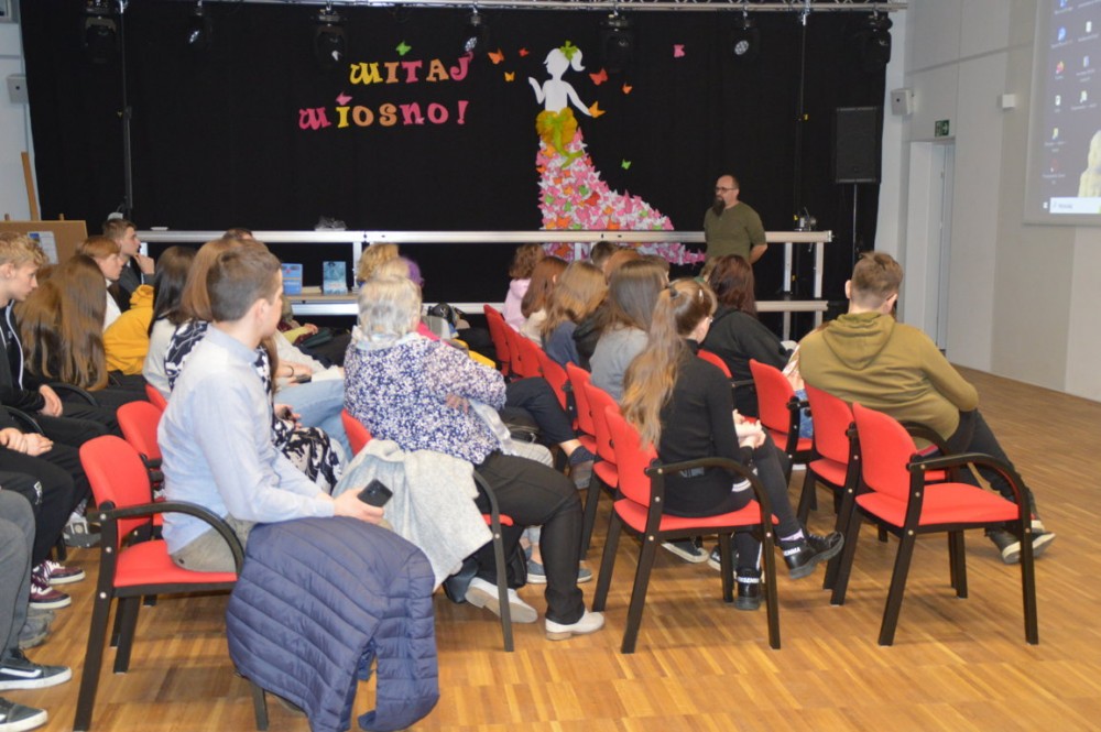 Spotkanie odbyło się w czwartek w nowej Sali Gminnego Ośrodka Kultury. Cieszyło się bardzo dużym zainteresowaniem. Przybyło na nie wielu uczniów miejscowej szkoły podstawowej oraz Zespołu Szkół w Dowspudzie.
