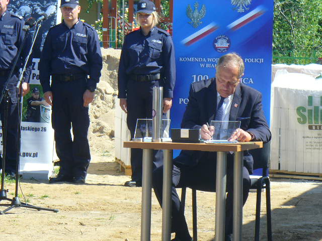 W poniedziałek w Raczkach nastąpiło uroczyste podpisanie aktu erekcyjnego i wmurowanie kamienia węgielnego pod siedzibę nowego Posterunku Policji. Budynek powstaje przy ul. Nowe Osiedle, obok ośrodka zdrowia.