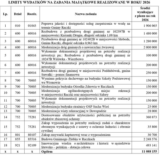 - Jest to budżet zrównoważony i optymalny. Mam nadziejÄ™, że wzroÅ›nie liczba planowanych inwestycji, ponieważ mamy kilka zÅ‚ożonych wniosków. Czekamy na rozstrzygniÄ™cie części z nich – mówiÅ‚ podczas sesji Wójt Gminy Raczki Piotr Gajda. – Duże Å›rodki przeznaczać bÄ™dziemy na bieżące utrzymanie dróg.
