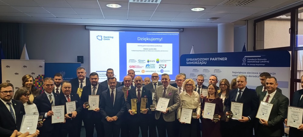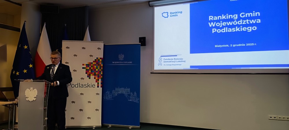 We wtorek, 2 grudnia, miała miejsce gala Rankingu Gmin Województwa Podlaskiego 2025. Ranking Gmin Województwa Podlaskiego przeprowadził ośrodek Fundacja Rozwoju Demokracji Lokalnej - Podlaskie Centrum we współpracy z Urzędem Statystycznym w Białymstoku.