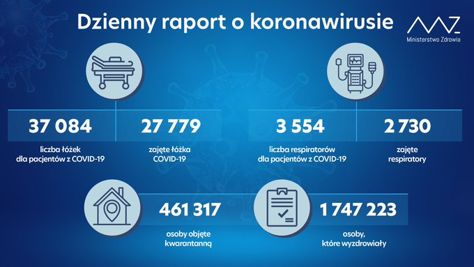 Od początku pandemii w Polsce koronawirusa wykryto u 2 189 966 osób. Zmarło 51 305, wyzdrowiało 1 747 223 osób.