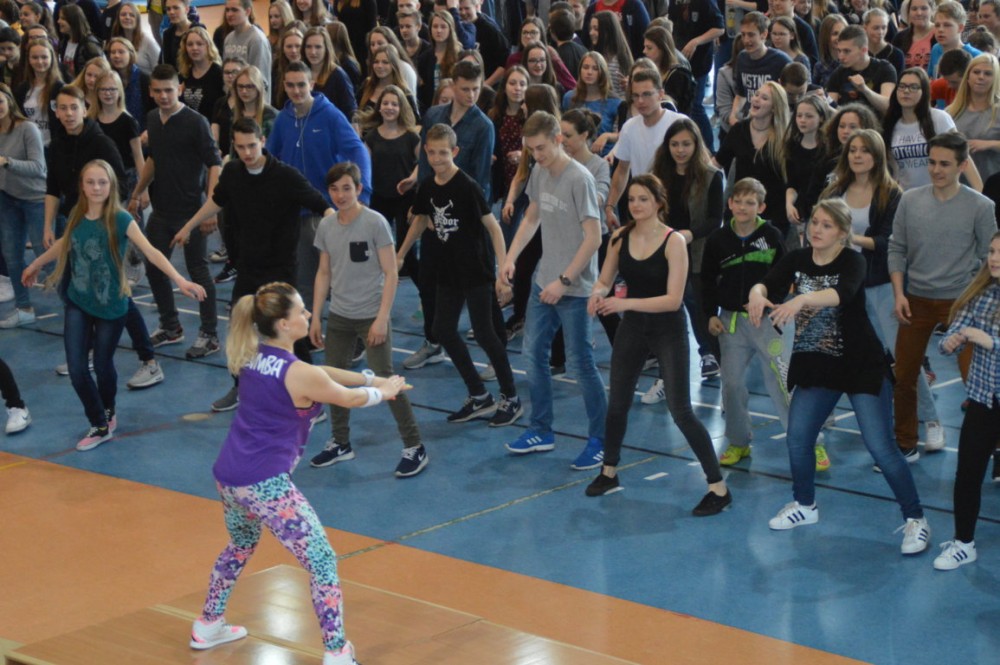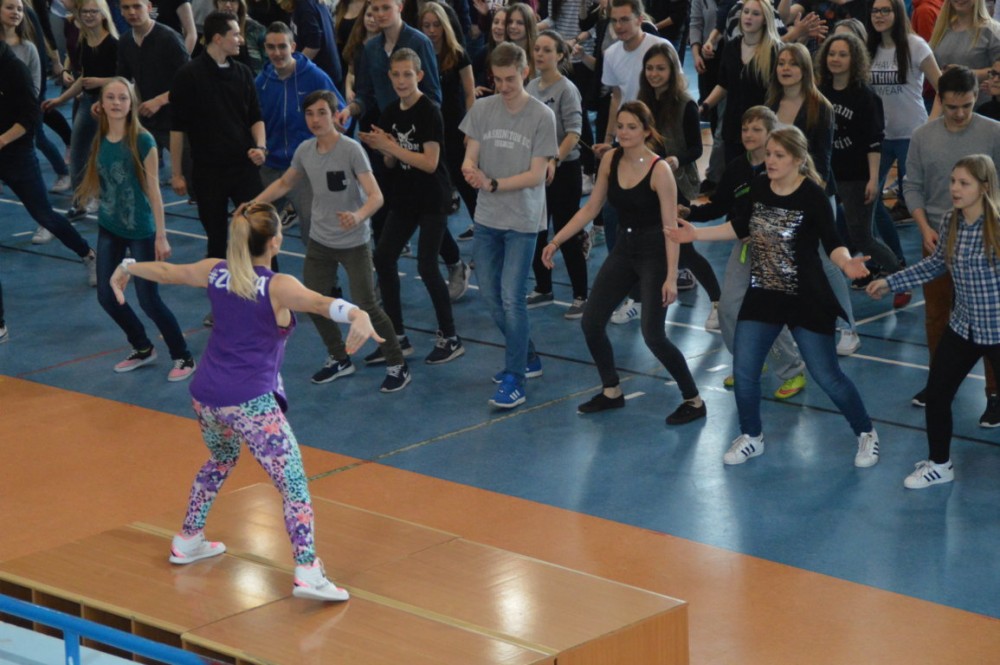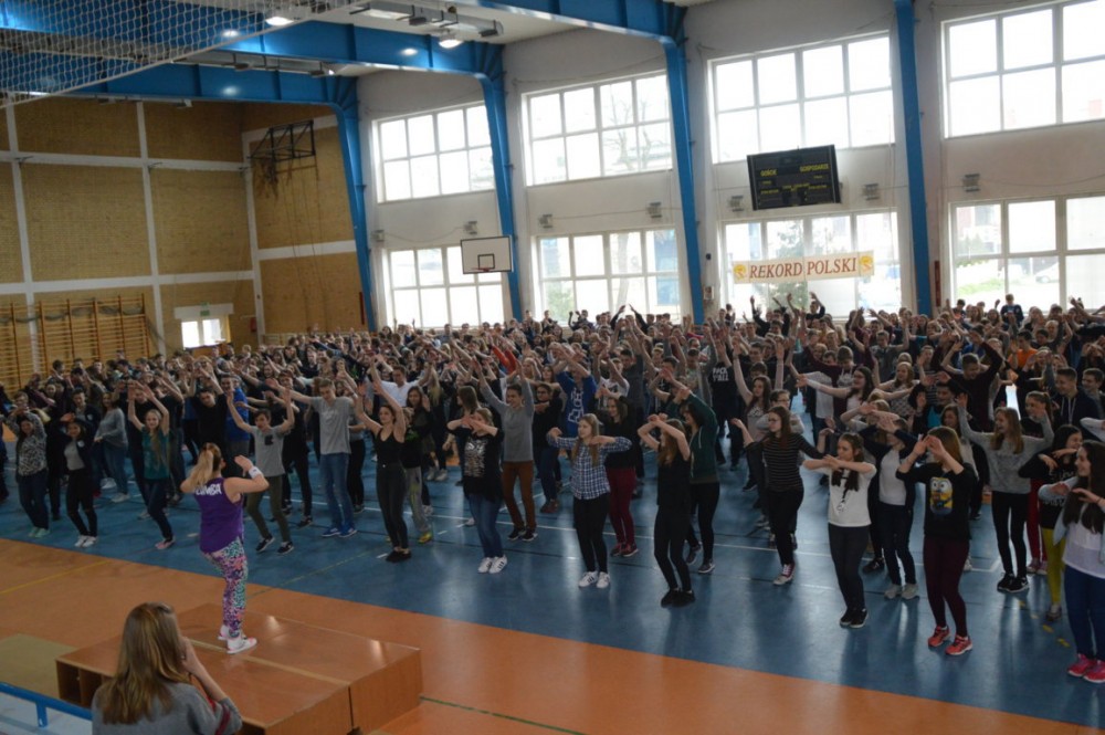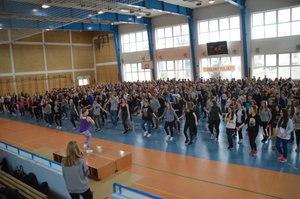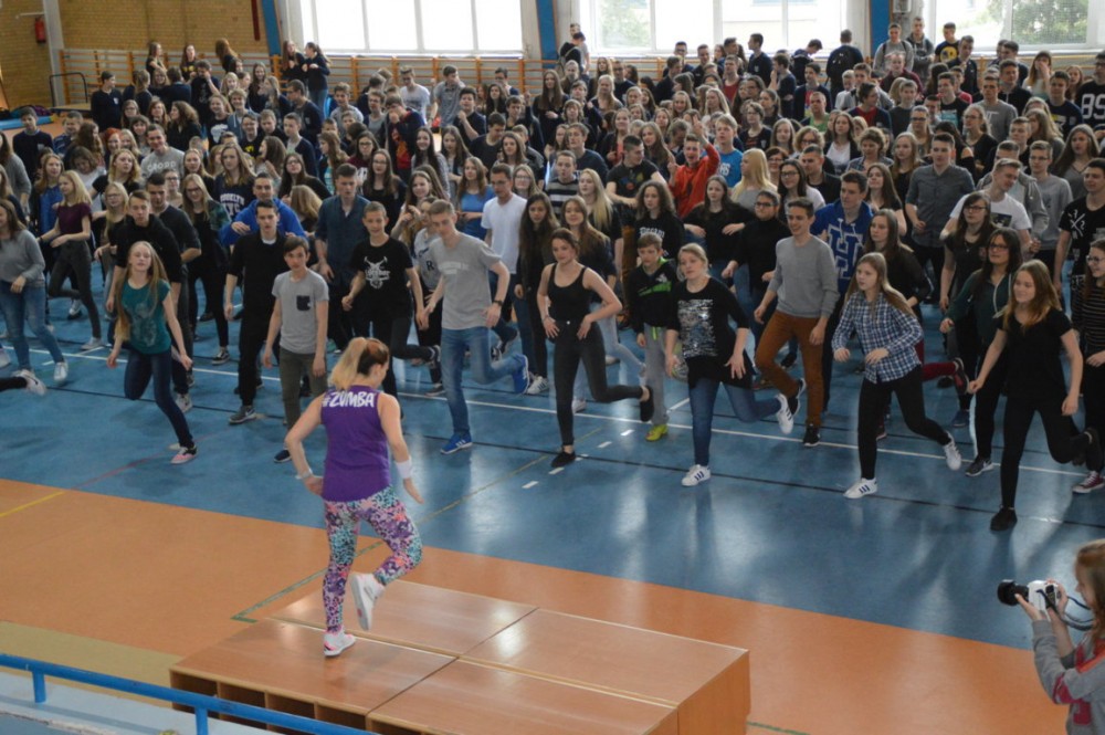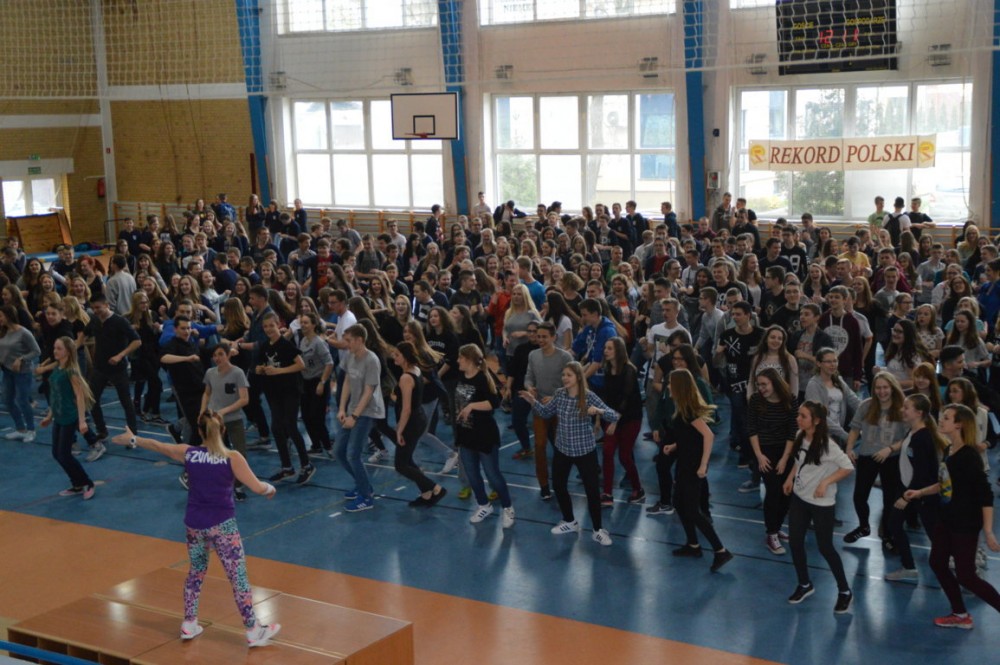 Uczniowie z Gimnazjum nr 3 oraz z II Liceum Ogólnokształcącego w Suwałkach, a także nauczyciele i wszyscy chętni mogli wziąć w czwartek udział w rekordowej zumbie. Tańczyło około 800 osób.