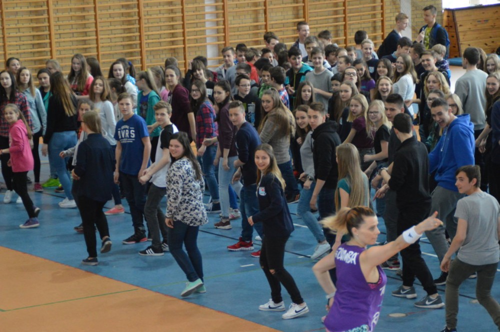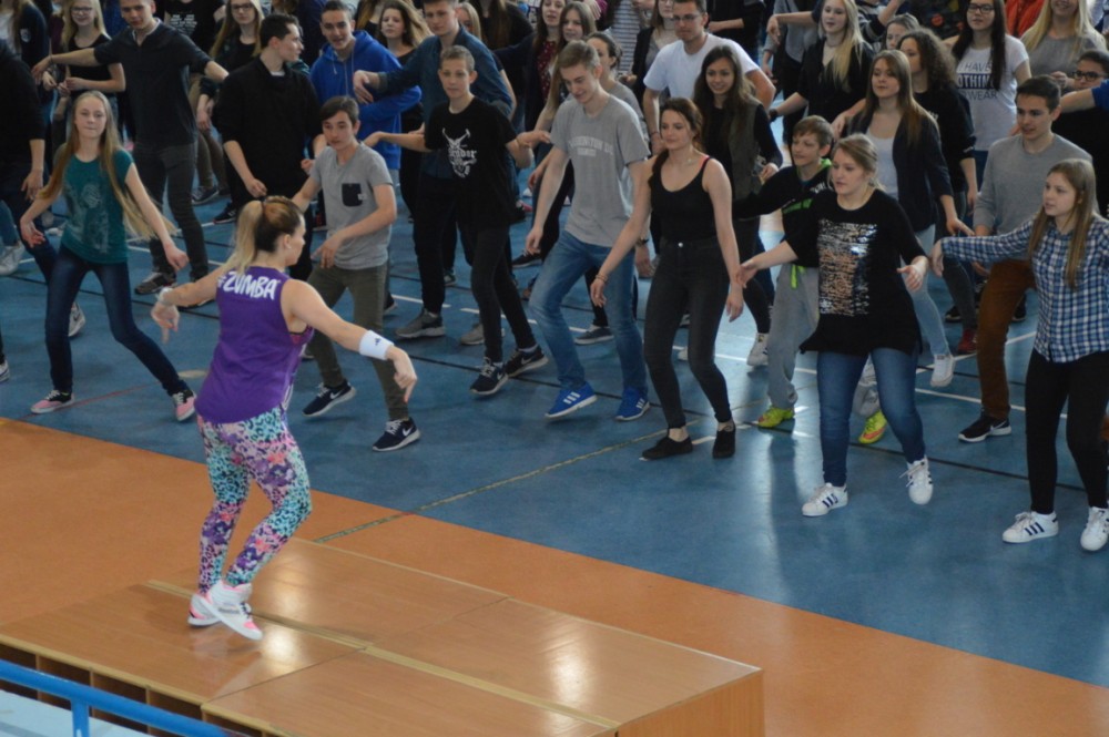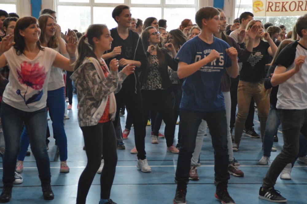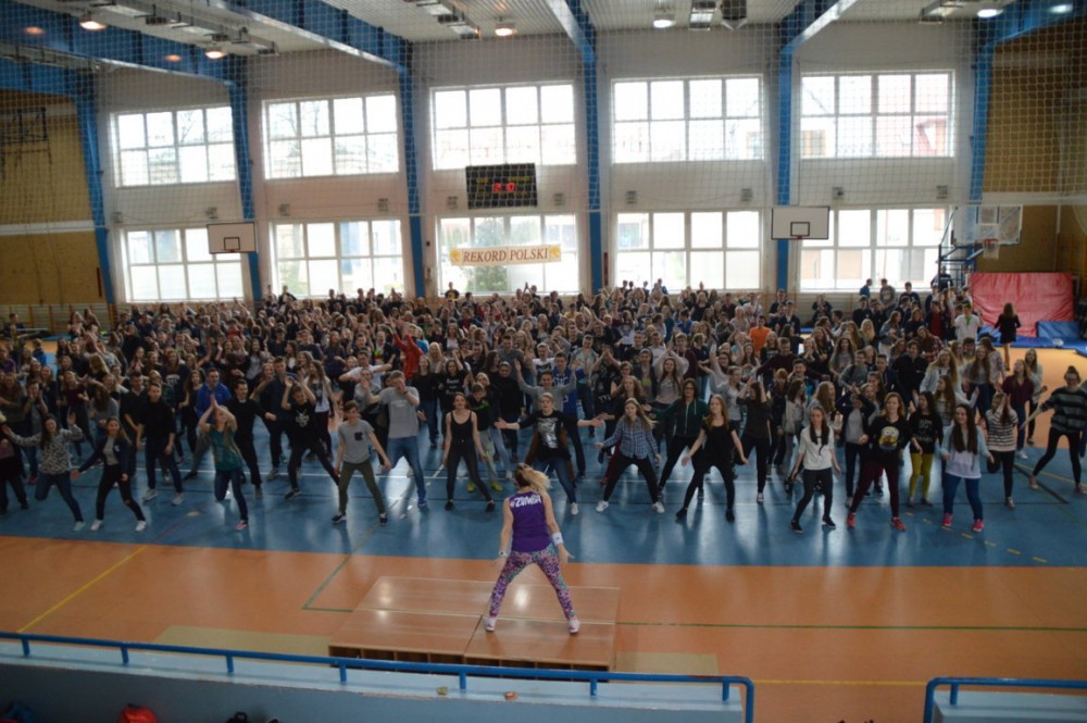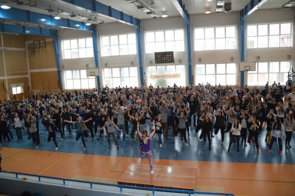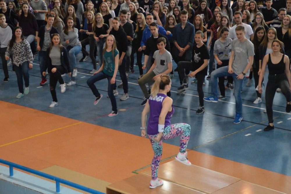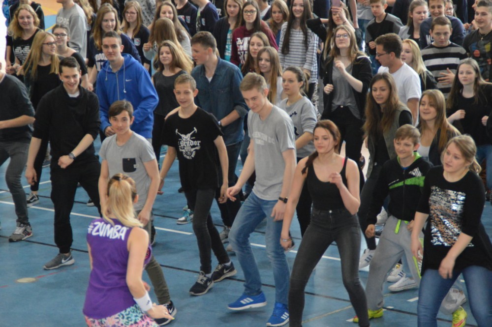 Uczniowie z Gimnazjum nr 3 oraz z II Liceum Ogólnokształcącego w Suwałkach, a także nauczyciele i wszyscy chętni mogli wziąć w czwartek udział w rekordowej zumbie. Tańczyło około 800 osób.