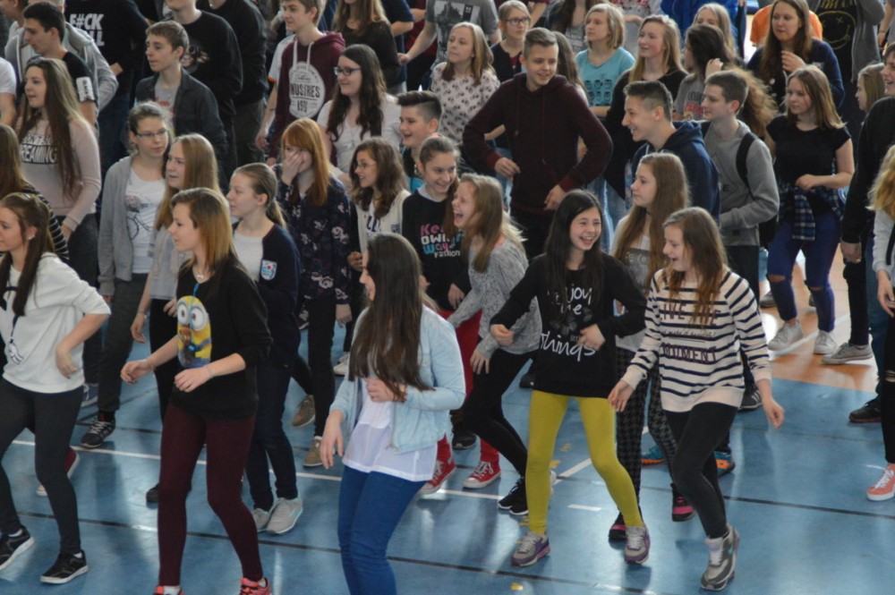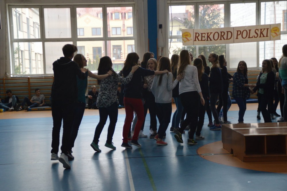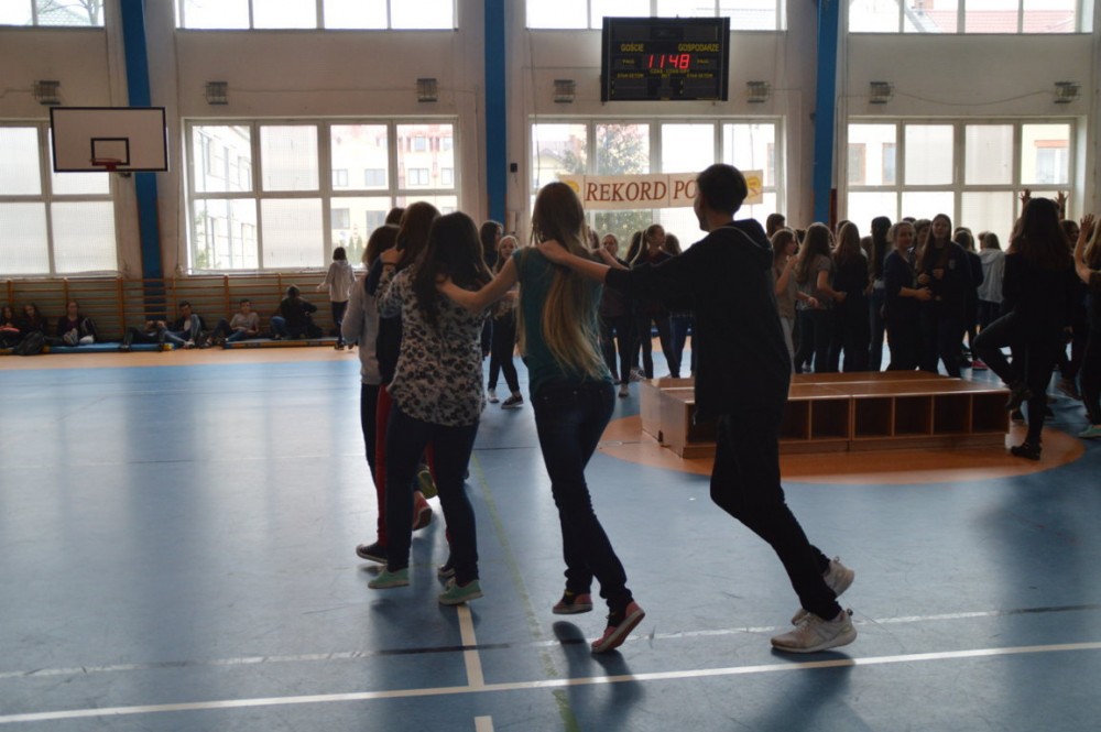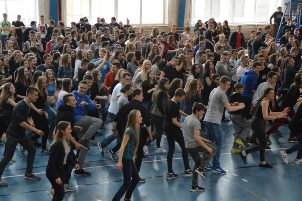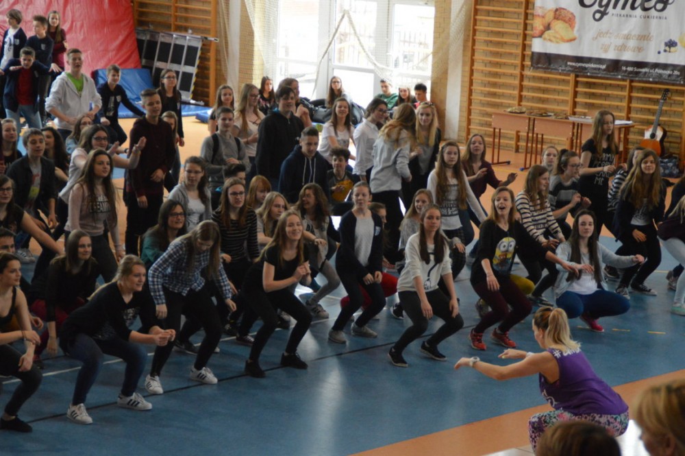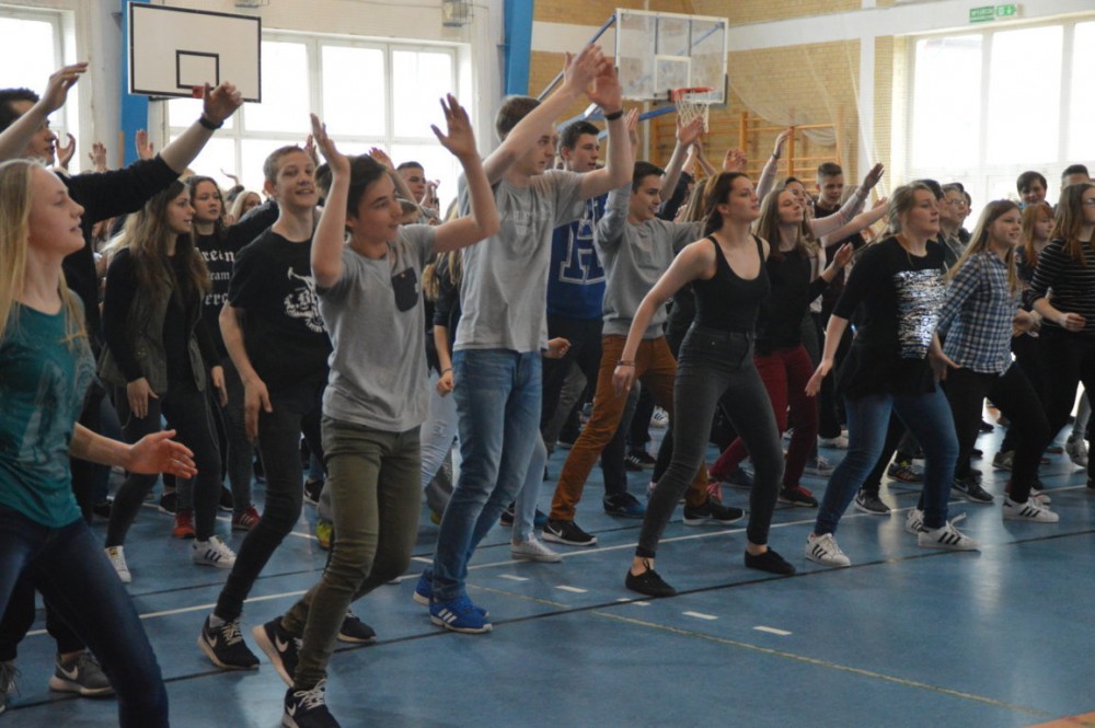 Uczniowie z Gimnazjum nr 3 oraz z II Liceum Ogólnokształcącego w Suwałkach, a także nauczyciele i wszyscy chętni mogli wziąć w czwartek udział w rekordowej zumbie. Tańczyło około 800 osób.