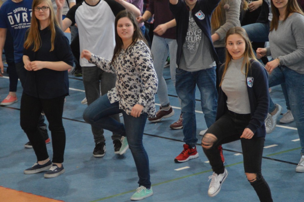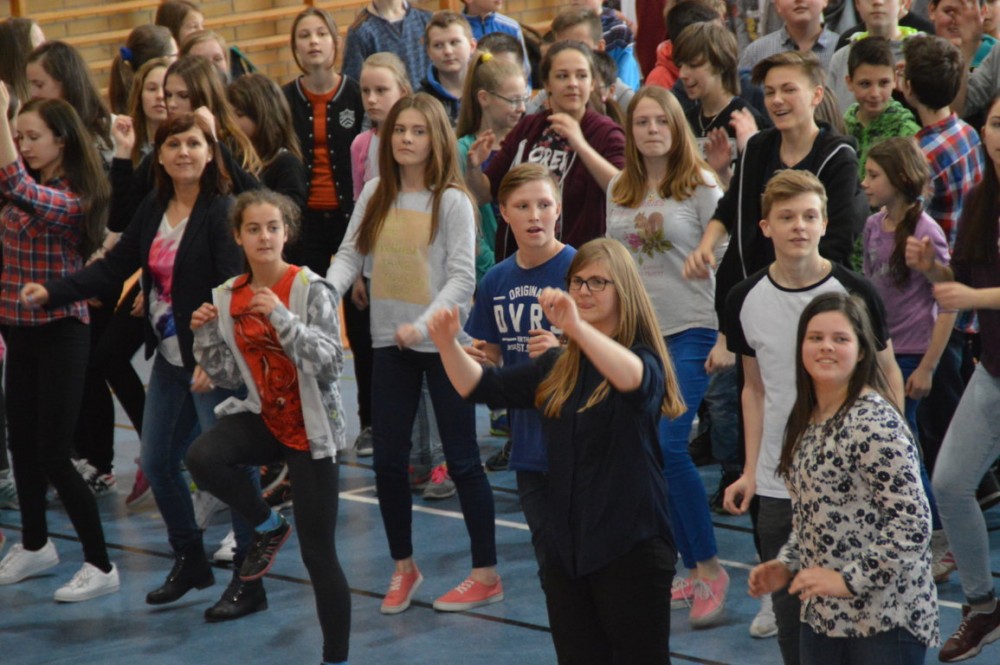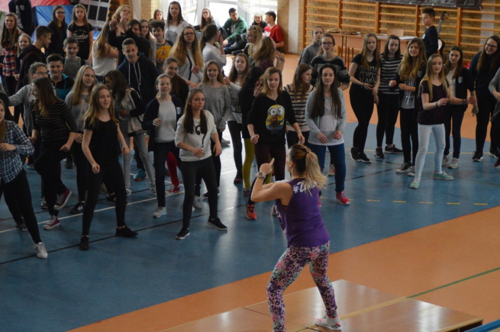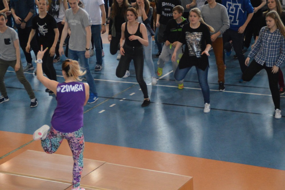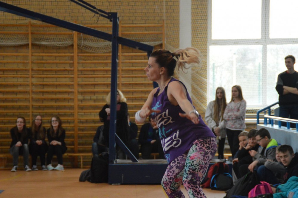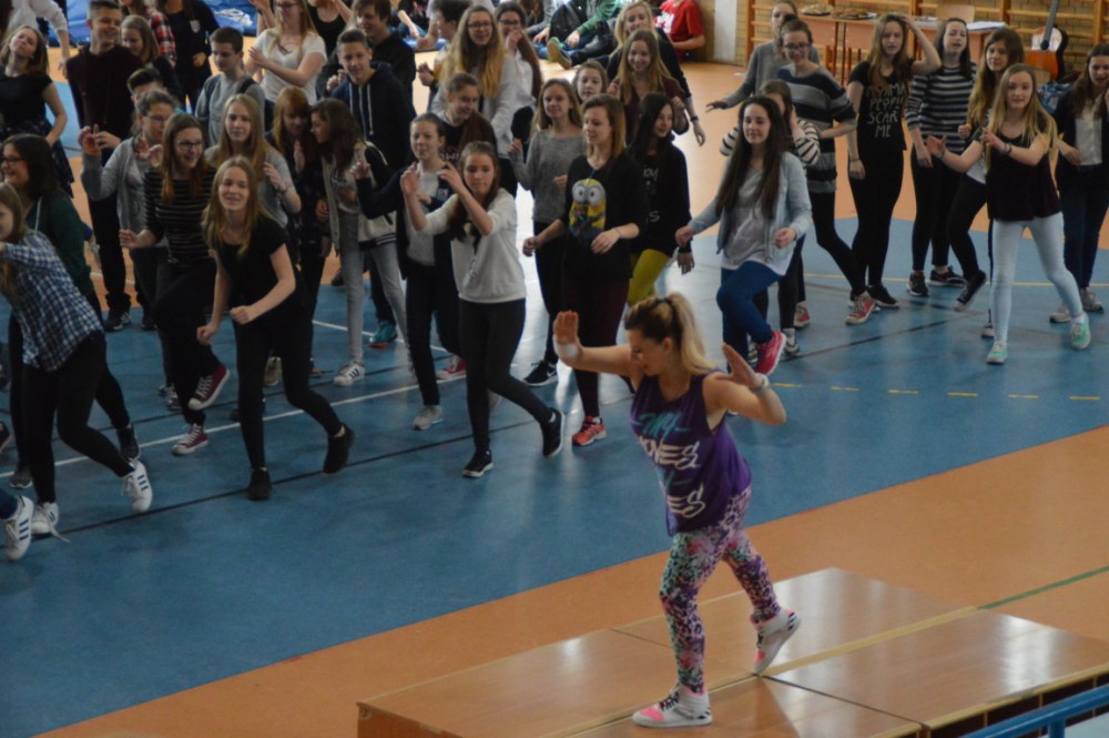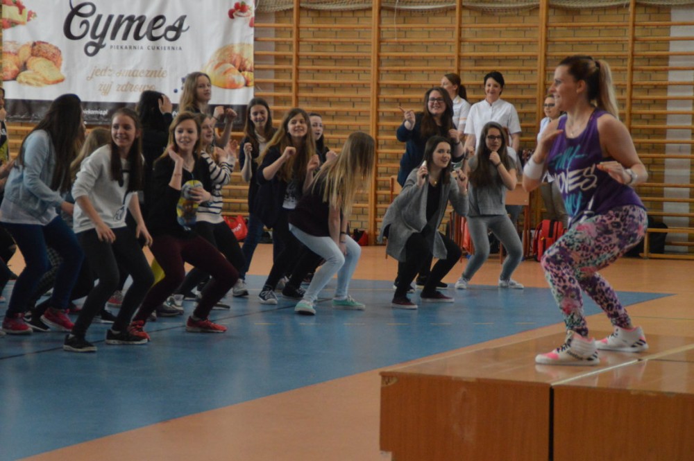 Po oficjalnym powitaniu swoje umiejętności pokazały utalentowane uczennice. Potem odbyła się krótka muzyczna rozgrzewka, a gdy już wszyscy zostali wprawieni w doskonały humor, na scenę wyszła Lidia Kulik i rozpoczął się wielki taniec „zumba ala Zespół Szkół nr 2”. Każdy z uczestników mógl się wcześniej posilić kanapkami, których zrobiono 1000.