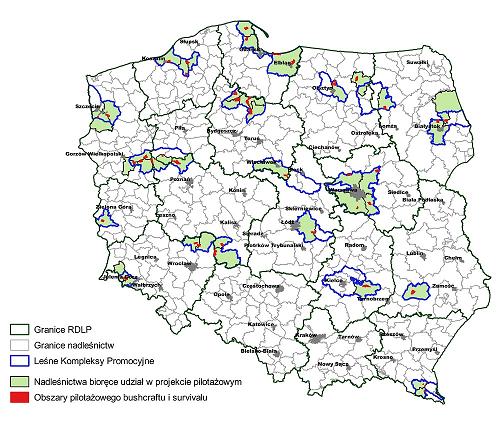 Pilotażowy program ruszyÅ‚ w kilkunastu regionach Polski 21 listopada. W póÅ‚nocno-wschodniej Polsce tereny dostÄ™pne do uprawiania bushcraftu i survivalu sÄ… w dwóch nadleÅ›nictwach w Puszczy KnyszyÅ„skiej w Dojlidach i w Czarnej BiaÅ‚ostockiej i w jednym w Puszczy Piskiej – w NadleÅ›nictwie Pisz.