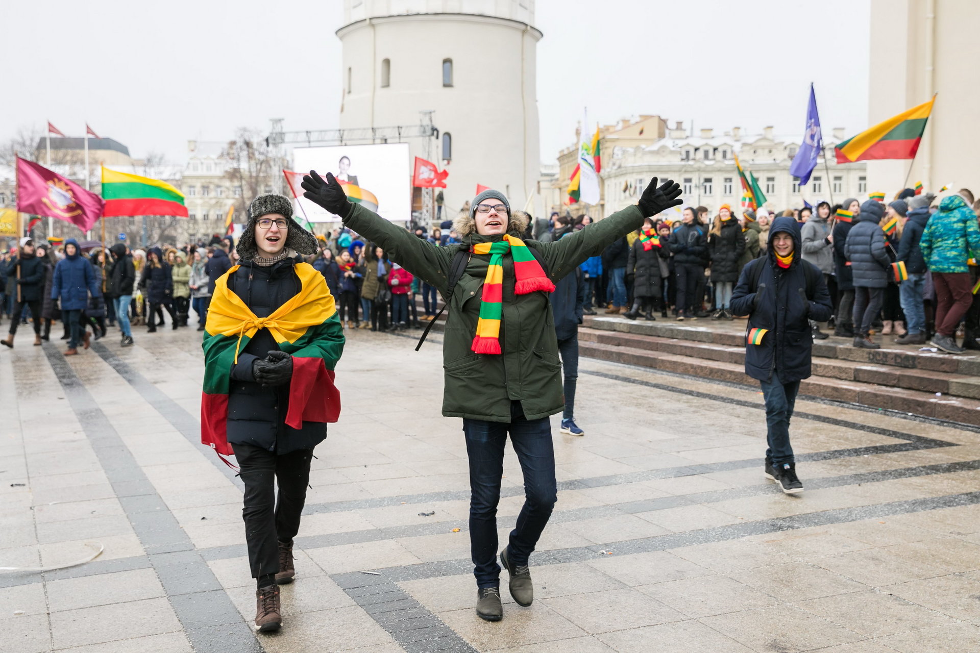 - O 13:00 na Wielkim Dziedzińcu Uniwersytetu Wileńskiego rozpocznie się otwarta świąteczna lekcja „Świętuj Litwę” poświęcona dacie 16 lutego, podczas której odbędą się debaty słynnych litewskich historyków i występy wykonawców muzycznych, odtworzone zostaną wideo pozdrowienia dla Litwy od znanych ludzi na Litwie i na całym świecie.