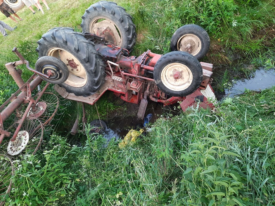 W niedzielÄ™ po poÅ‚udniu sÅ‚użby ratunkowe otrzymaÅ‚y informacjÄ™ o wypadku podczas prac polowych w Jankielówce koÅ‚o Raczek. ZgrabiajÄ…cy siano 29-letni mężczyzna zjechaÅ‚ do rowu i zostaÅ‚ przygnieciony przez ciÄ…gnik.