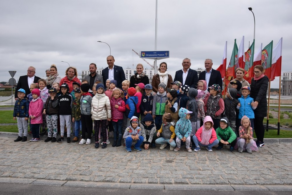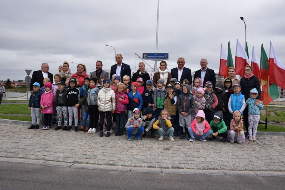 Mistrzowie i medaliści olimpijscy, uczestnicy igrzysk olimpijskich wzięli udział w uroczystości nadania nazwy rondu u zbiegu ulic Sportowej i Aleksandry Piłsudskiej.