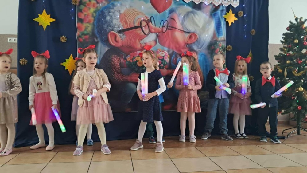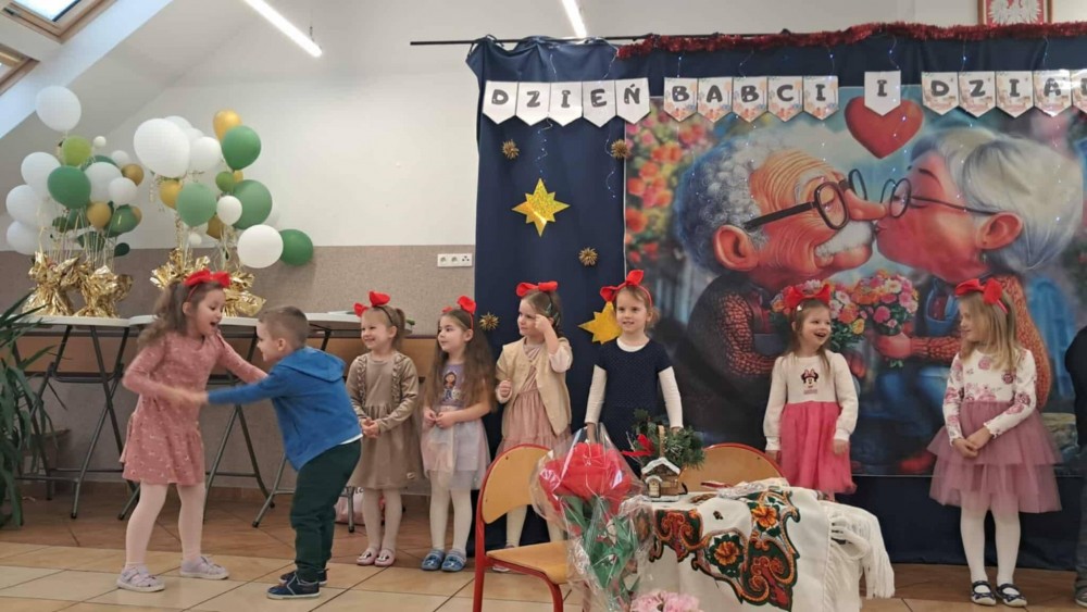 Przedszkolaki z ogromnym zaangażowaniem przygotowały specjalny program artystyczny, by podziękować swoim bliskim za ich miłość i opiekę. Było mnóstwo śmiechu, szczerych wzruszeń i gromkich braw od licznie zgromadzonych gości, którzy wypełnili salę po brzegi. Po występach dzieci z dumą wręczyły swoim Babciom i Dziadkom własnoręcznie wykonane upominki.