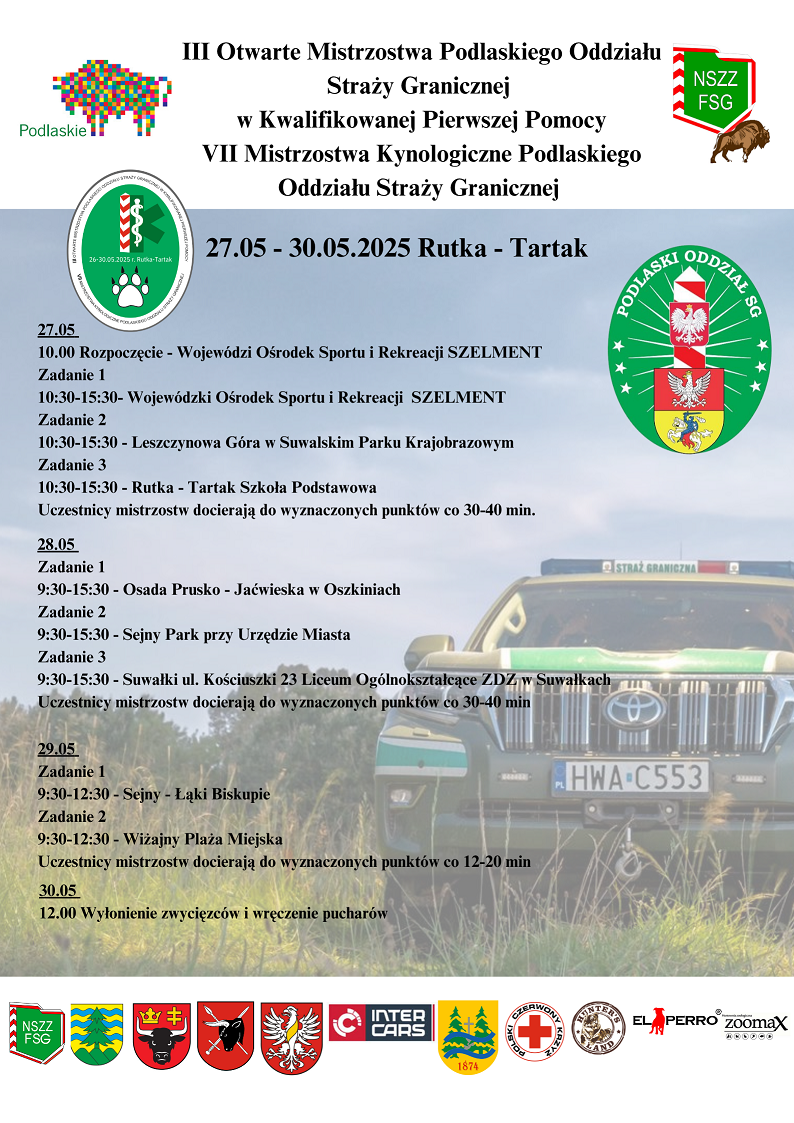 We wtorek, 27 maja rozpoczną się czterodniowe III Otwarte Mistrzostwa w Kwalifikowanej Pierwszej Pomocy Podlaskiego Oddziału Straży Granicznej. Dodatkowo, w tym roku Mistrzostwa połączone są z VII Mistrzostwami Kynologicznymi POSG.