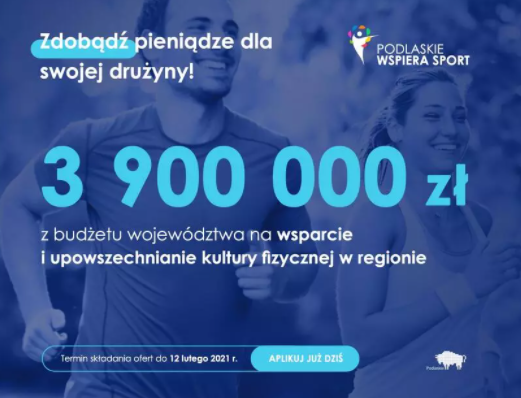 Kluby sportowe z województwa podlaskiego mogą ubiegać się m.in. o dofinansowanie szkoleń i zawodów w najwyższej klasie rozgrywkowej w seniorskich grach zespołowych. Wśród ogłoszonych konkursów są dwa przeznaczone na tego typu przedsięwzięcia. Ich łączna pula to 1,5 mln złotych.