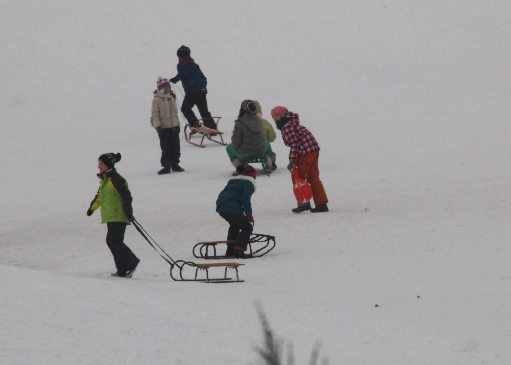 Gdy dorośli i młodzież szusują na stokach Szelmentu, maluchy bawią się na górkach wokół tzw. „Kaczego Dołka”.