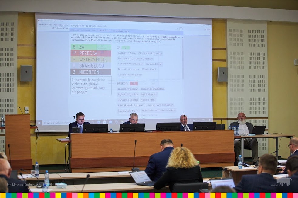Sejmik Województwa Podlaskiego na tym samym posiedzeniu udzieliÅ‚ wotum zaufania zarzÄ…dowi województwa. Za byÅ‚o 17 radnych, przeciw oÅ›miu, dwóch wstrzymaÅ‚o siÄ™.