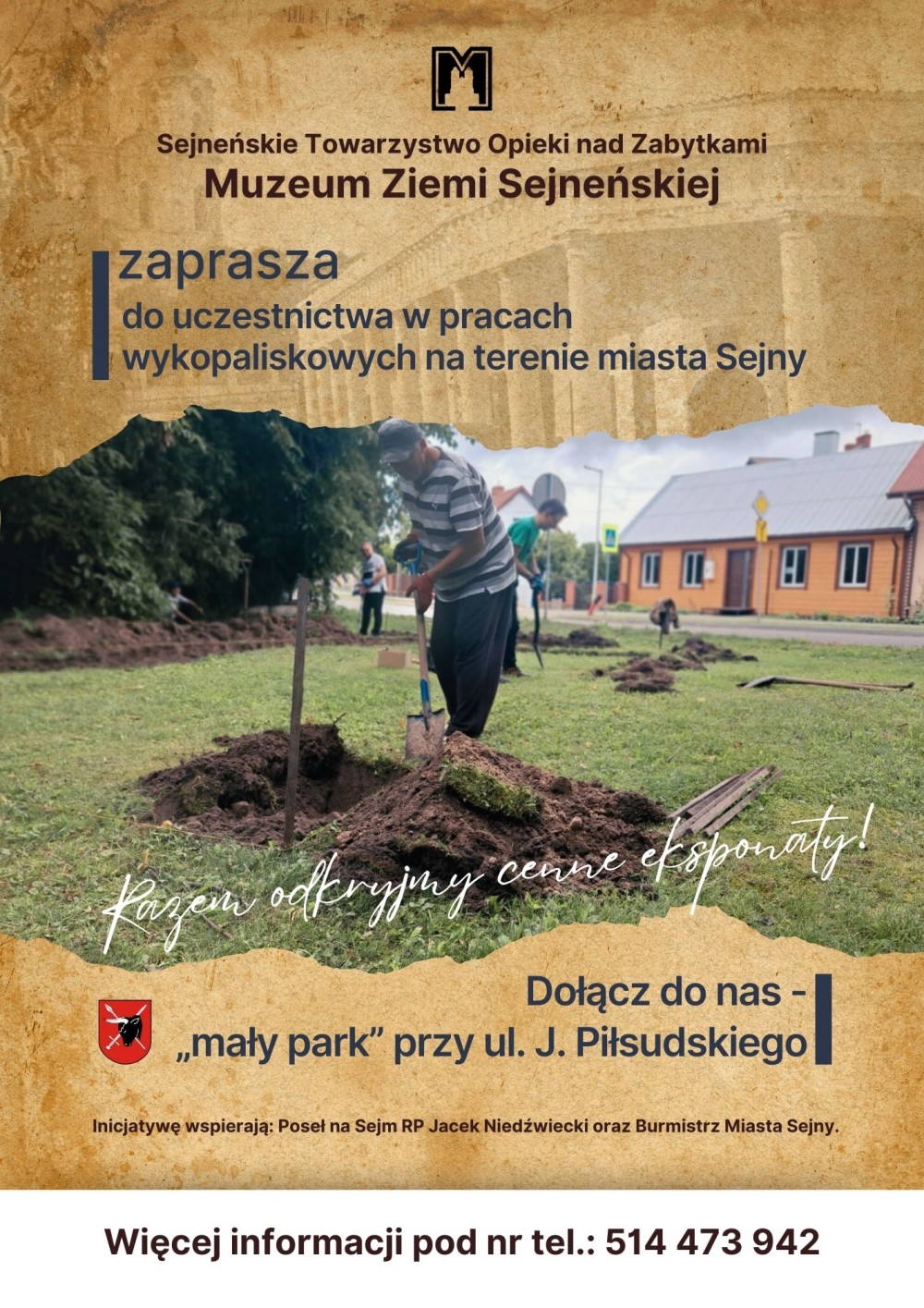 - Obecny Burmistrz Miasta Sejny bardzo przychylnie podszedÅ‚ do naszej propozycji – mówi dyrektor Muzeum Ziemi SejneÅ„skiej, prezes SejneÅ„skiego Towarzystwa Opieki nad Zabytkami, uczestniczÄ…cy w wykopaliskach. - NaszÄ… inicjatywÄ™ popiera też poseÅ‚ na Sejm RP Jacek Niedźwiedzki – dodaje.