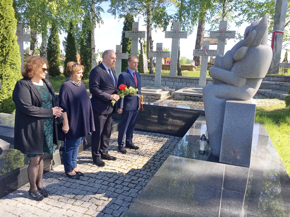 Przed roboczym spotkaniem przedstawiciele organizacji litewskich w Polsce wraz z personelem konsularnym złożyli kwiaty na grobach żołnierzy litewskich na cmentarzach Berżnikach i Sejnach oraz pod pomnikami - biskupa A. Baranauskasa i poległych w katastrofie smoleńskiej.