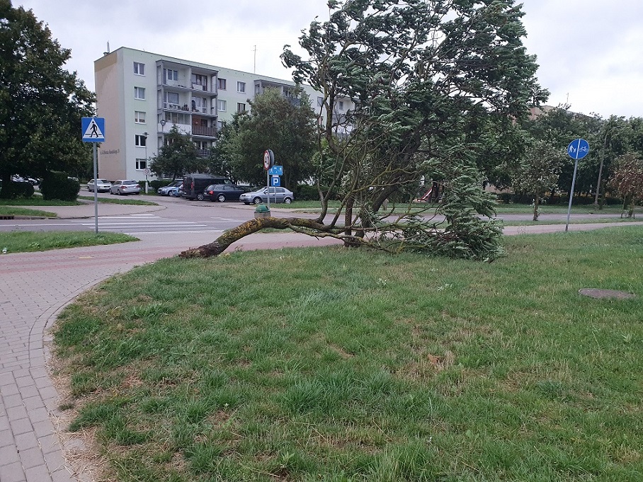 Przewrócone rusztowanie, drzewa, połamane konary, uszkodzone samochody, braki w dostawie prądu – to skutki wichury, jaka przeszła wieczorem przez nasz region.