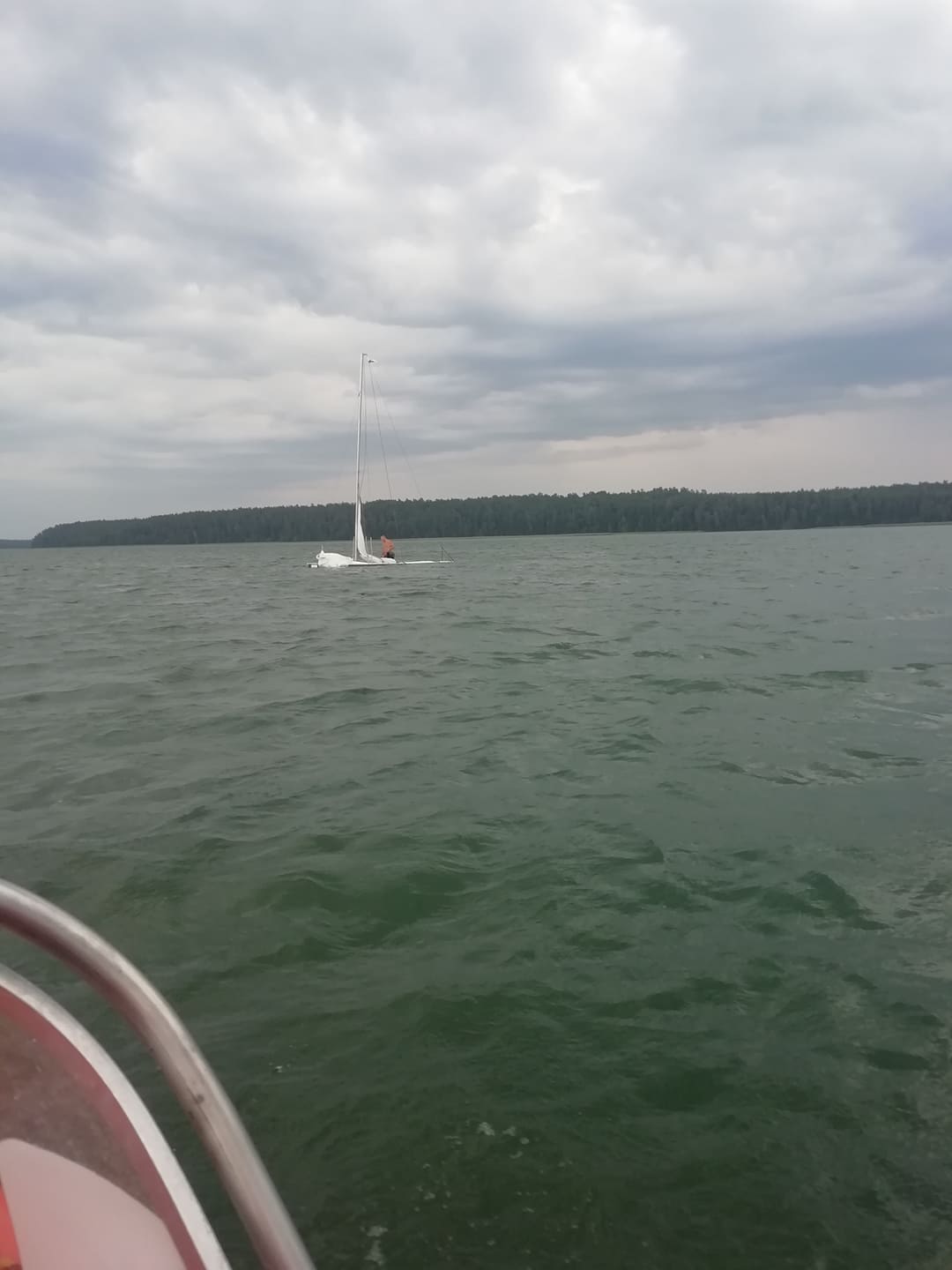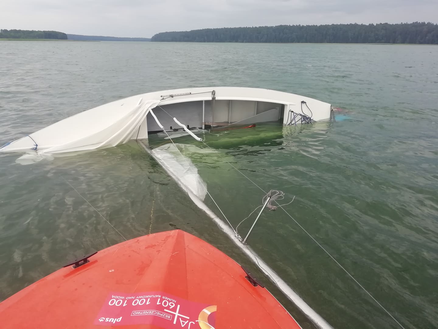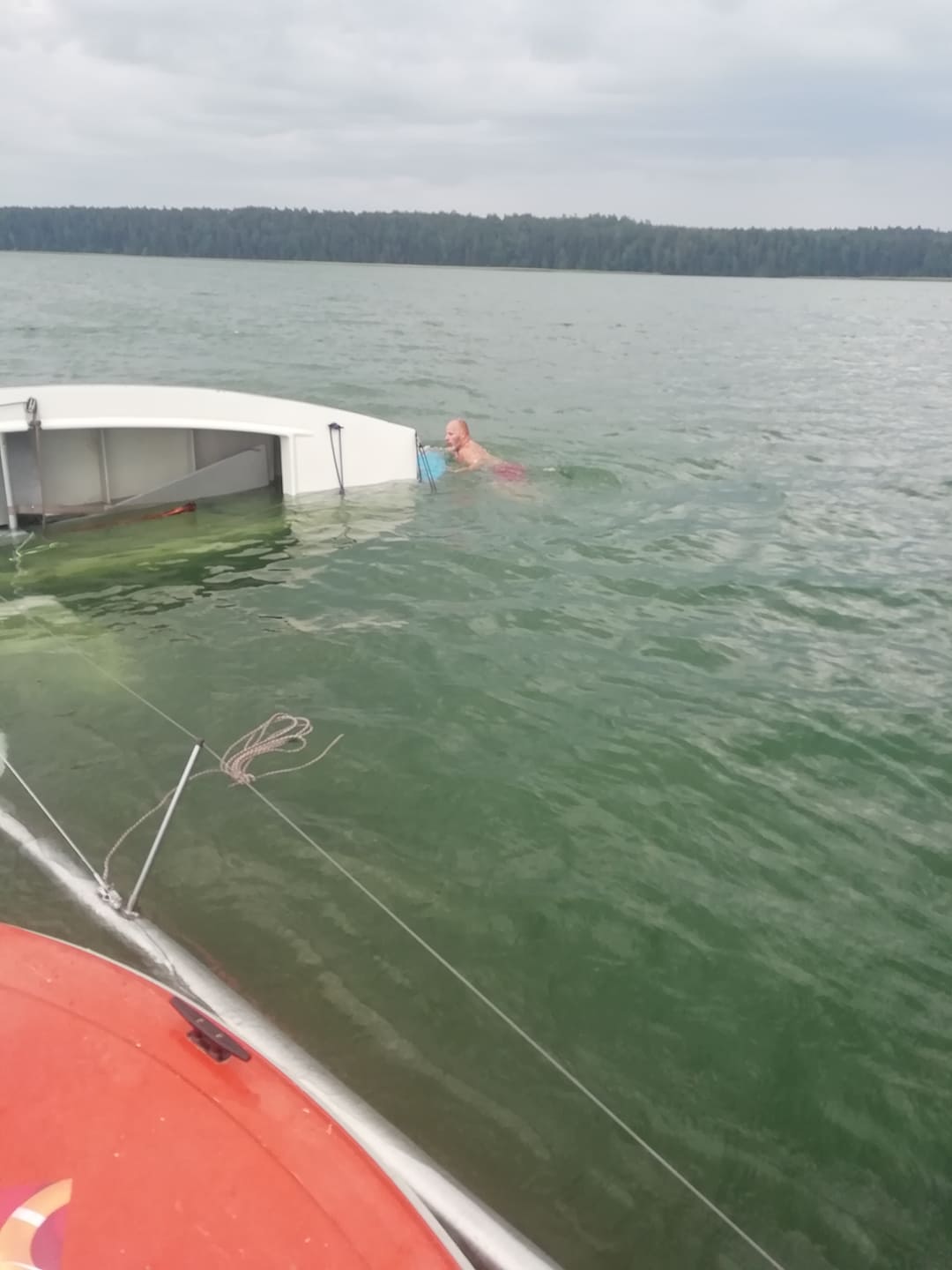 - Natychmiast zadysponowano dwie ratownicze Å‚odzie motorowe. Po dopÅ‚yniÄ™ciu na miejsce zdarzenia, ratownicy zastali dwie osoby dorosÅ‚e bez kamizelek asekuracyjnych w wodzie trzymajÄ…ce siÄ™ dryfujÄ…cej Å‚odzi, która zrobiÅ‚a tzw. grzyba. Ratownicy wyciÄ…gnÄ™li poszkodowanych z wody do swoich Å‚odzi, zabezpieczyli w sprzÄ™t asekuracyjny. NastÄ™pnie odholowano żaglówkÄ™ do brzegu. TuryÅ›ci z Zawiercia nie potrzebowali pomocy medycznej – opisuje akcjÄ™ ratowniczÄ… M. Zajko.