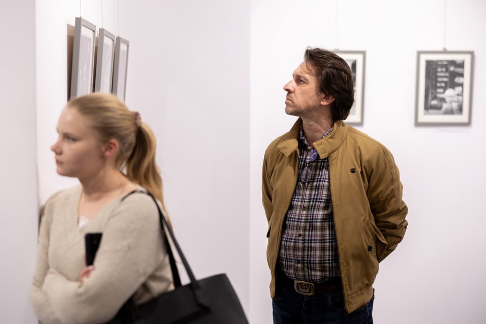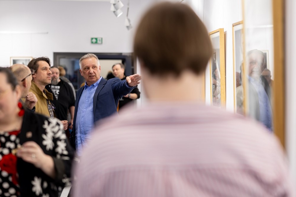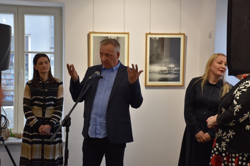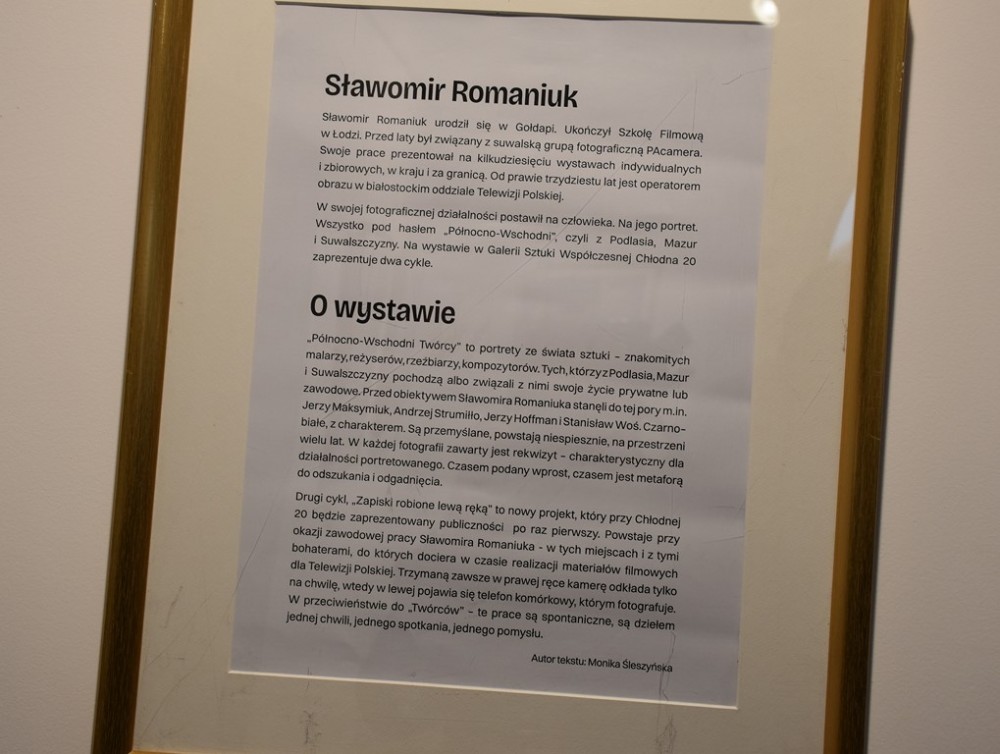 Autorem fotograficznych portretów zarówno tych długo i pieczołowicie przygotowywanych - z cyklu „Północno-Wschodni Twórcy”, a także tych zrobionych naprędce, przy okazji zawodowej pracy operatora kamery telewizyjnej, nazwanych „Zapiskami robionymi lewą ręką” jest Sławomir Romaniuk.