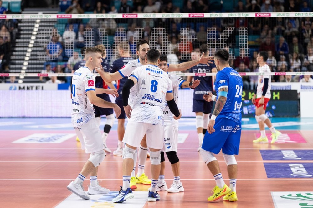 BiaÅ‚o-Niebiescy prowadzili 2:1 i wiadomo byÅ‚o, że zdobÄ™dÄ… przynajmniej 1 punkt. Nadal z Marcinem Krawieckim i Damianem Wierzbickim na boisku walczyli jednak o komplet i udawaÅ‚o siÄ™ im do stanu 13:13. Z drugiej linii huknÄ…Å‚ Igor Grobelny, w kolejnej akcji w asekuracji pogubiÅ‚ siÄ™ Konrad Stajer i ZAKSA zyskaÅ‚a przewagÄ™. Przy jej przewadze 21:17 na boisko wrócili Matias Sanchez i Bartosz Filipiak, ale to już bardziej z myÅ›lÄ… o piÄ…tym secie, bo czwartego ZAKSA wygraÅ‚a 25:20.
