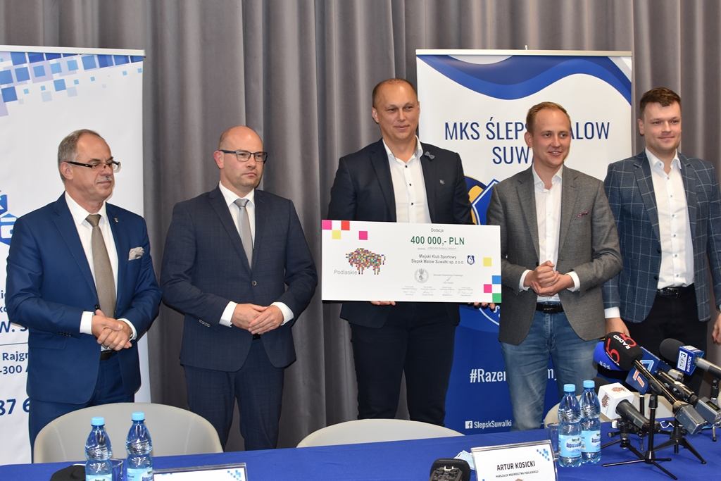 Czek o wartoÅ›ci 400 tys. zÅ‚ na wsparcie suwalskiej drużyny wrÄ™czyÅ‚ w poniedziaÅ‚ek (21.09) w siedzibie suwalskiego klubu Artur Kosicki, MarszaÅ‚ek Województwa Podlaskiego. W spotkaniu uczestniczyÅ‚ też PaweÅ‚ Wnukowski, radny sejmiku województwa.