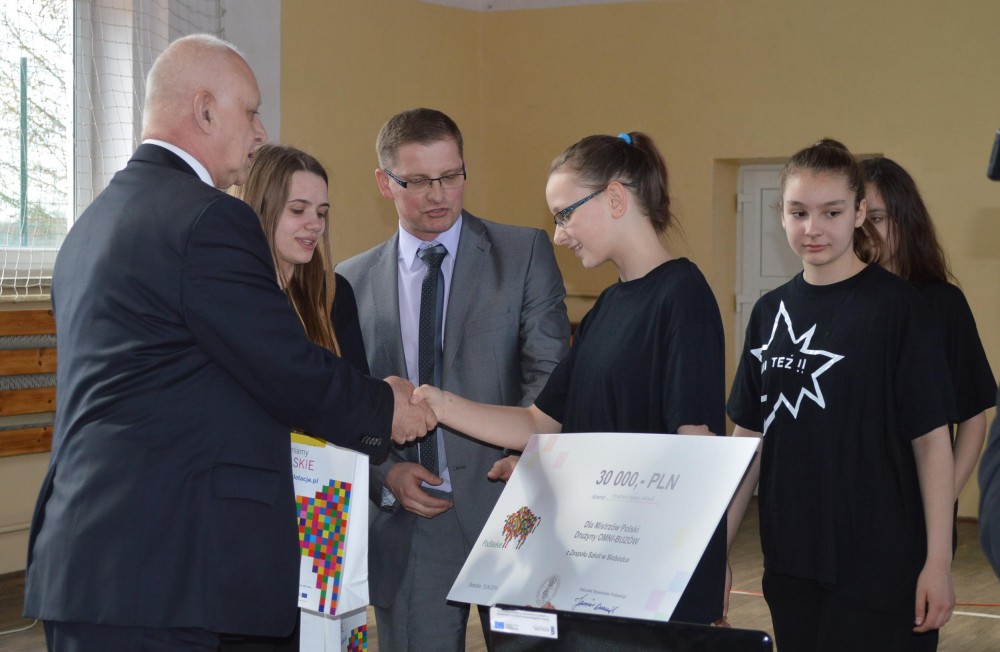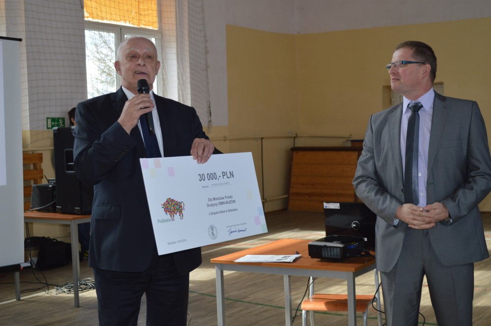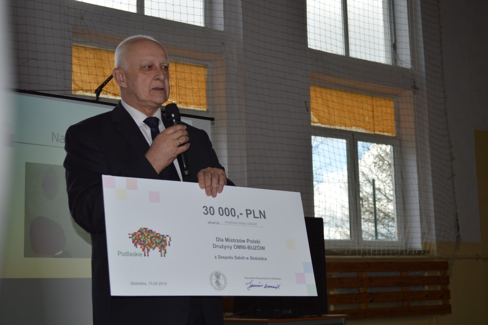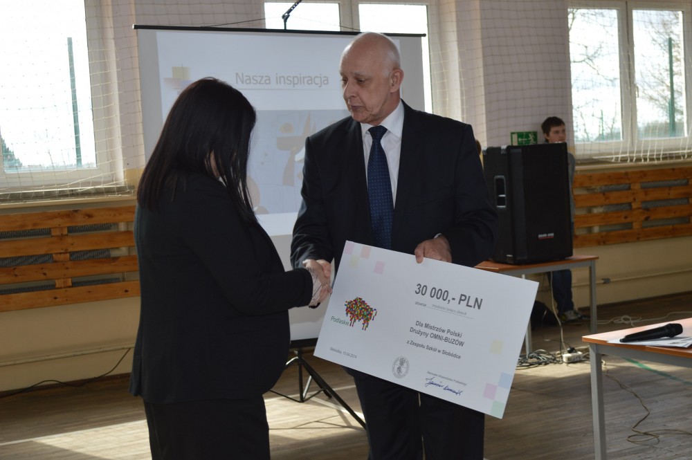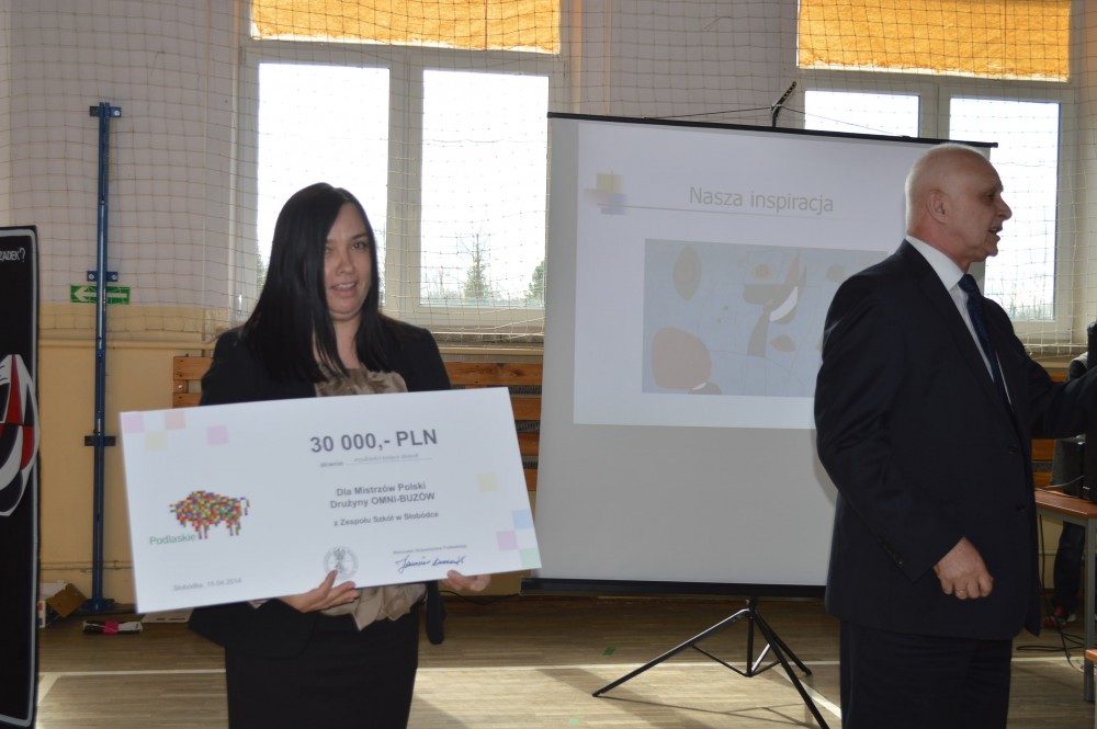 Czek na 30 tys. złotych wręczył dziś gimnazjalistom ze Słobódki koło Szypliszk Jarosław Dworzański, marszałek województwa podlaskiego. Brakuje im jeszcze 24 tys. na wyjazd na międzynarodową olimpiadę kreatywności w Stanach Zjednoczonych.
