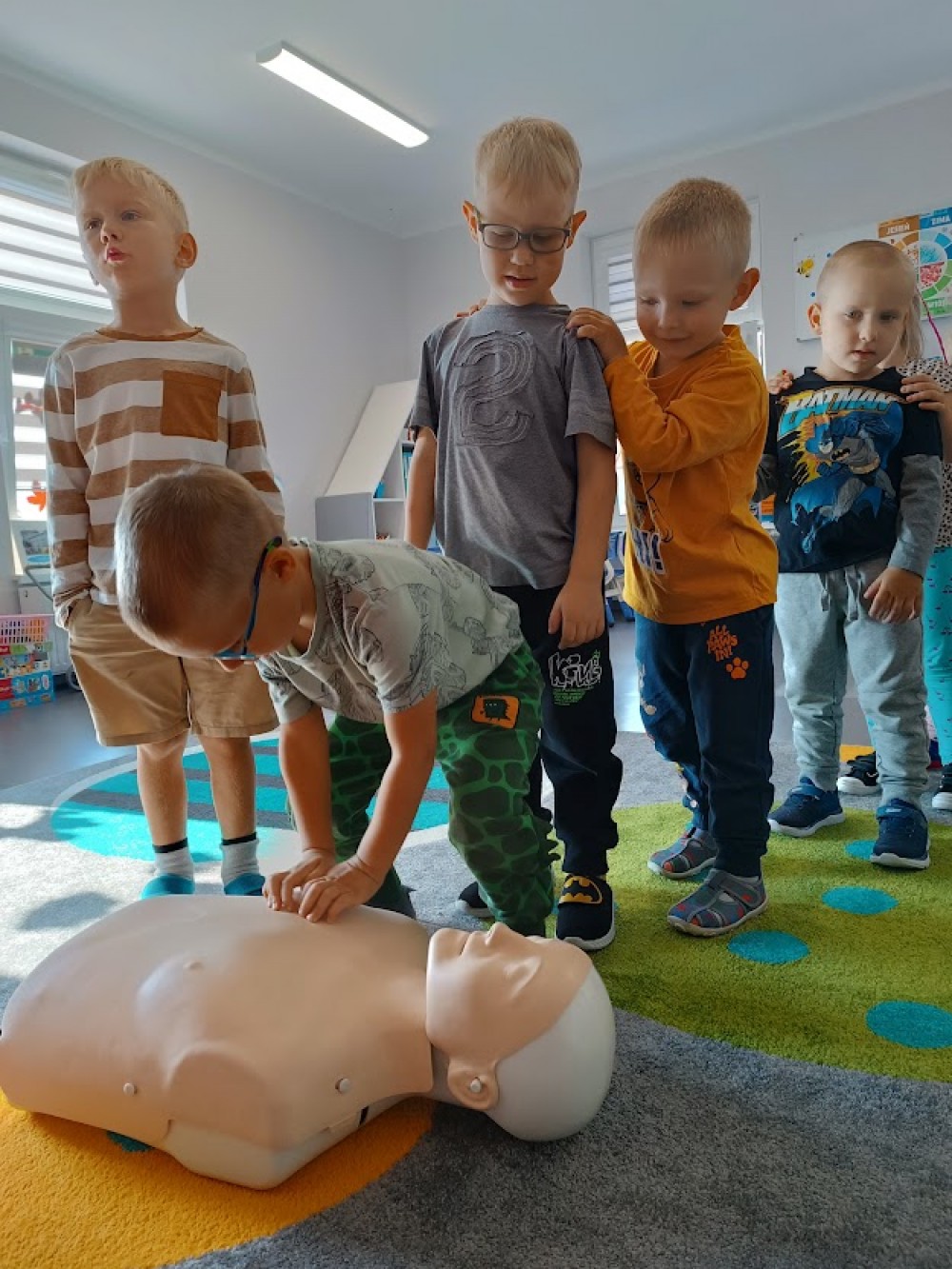 Podczas spotkania dzieci miaÅ‚y okazjÄ™ najpierw wysÅ‚uchać szczegóÅ‚owych instrukcji dotyczÄ…cych udzielania pierwszej pomocy, a nastÄ™pnie samodzielnie spróbować swoich siÅ‚ na fantomie.