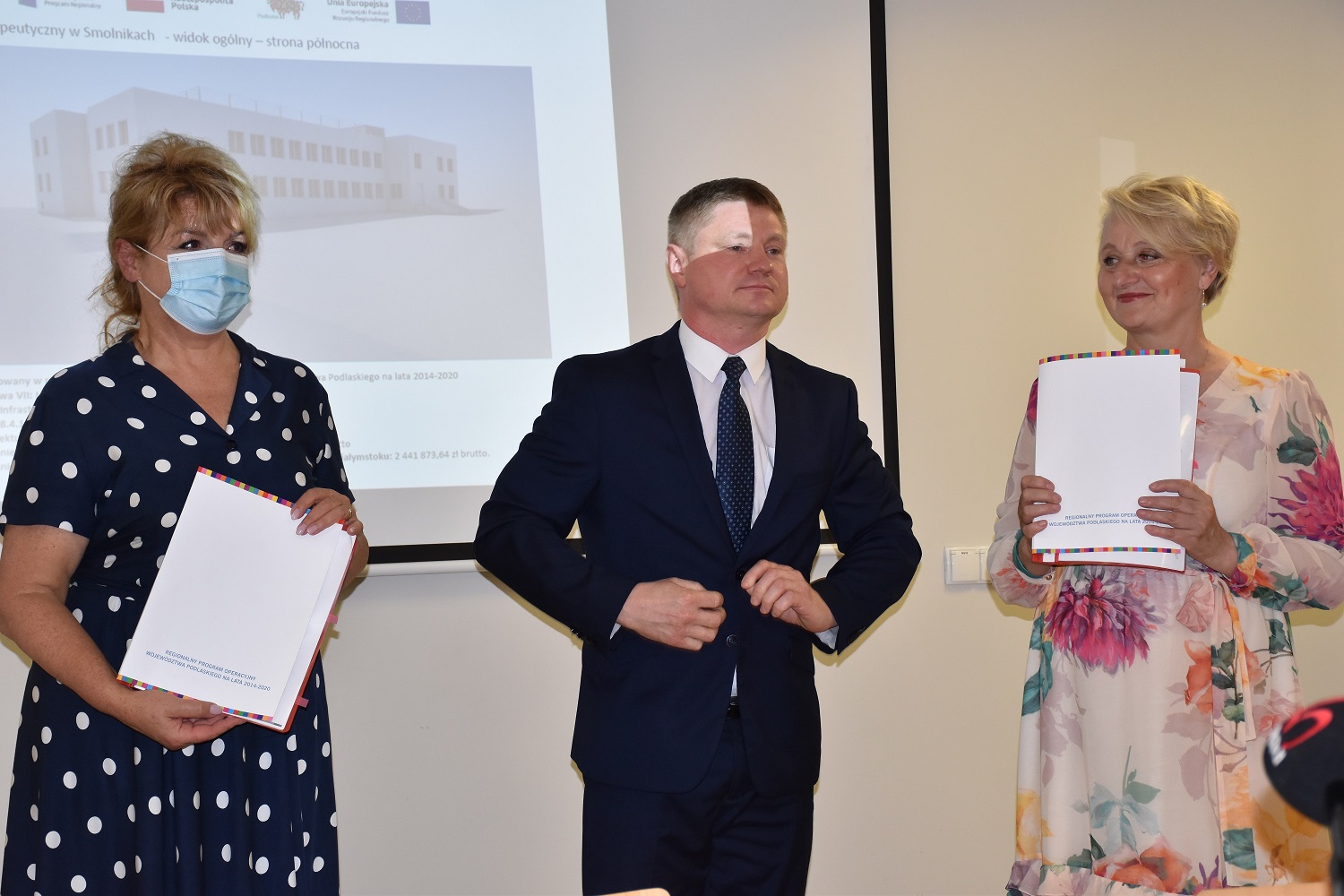 Wicemarszałek Marek Malinowski i Wiesława Burnos, członkini zarządu województwa oraz Bożena Łapińska, dyrektor suwalskiego Szpitala Psychiatrycznego podpisali umowę o udzieleniu dotacji w wysokości 7,4 mln zł na utworzenie Ośrodka Terapeutycznego w Smolnikach.