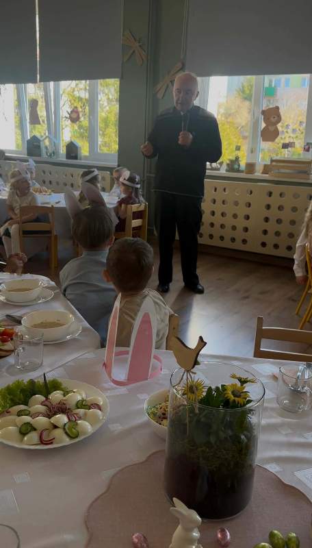 Przedszkolną uroczystość uświetniła obecność Księdza Prałata Lecha Łuby, który przypomniał o duchowym wymiarze nadchodzących Świąt Zmartwychwstania Pańskiego.