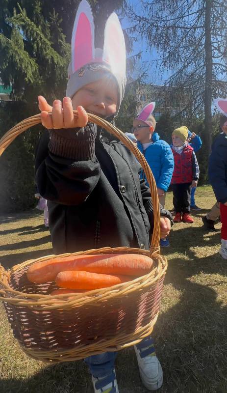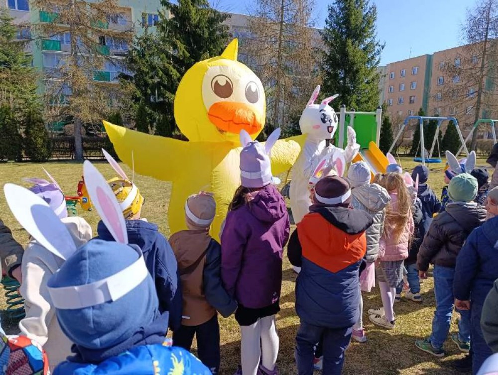 Po śniadaniu oczywiście nie zabrakło wesołej zabawy z zajączkiem i kurczakiem w ogrodzie przedszkolnym. Wydarzenia te były dla najmłodszych nie tylko lekcją tradycji, ale przede wszystkim czasem integracji i dzielenia się radością. Takie chwile uczą nasze dzieci jak ważne są wspólnota i wzajemna życzliwość przy świątecznym stole.