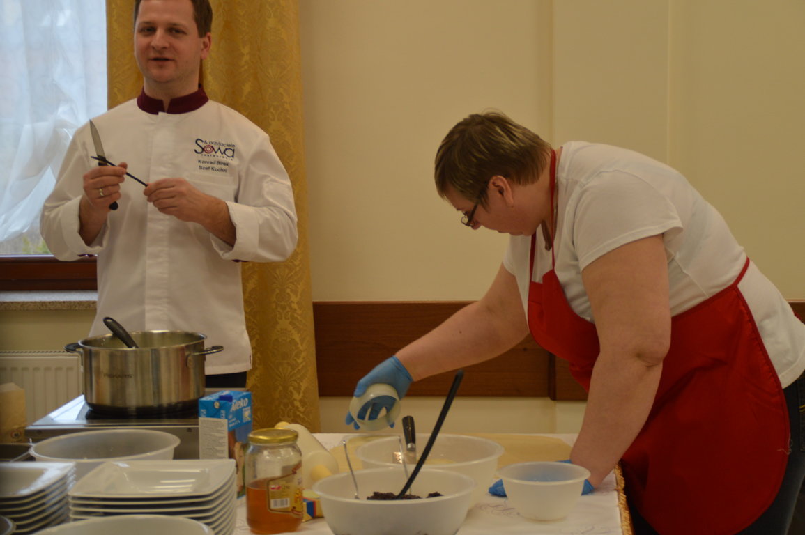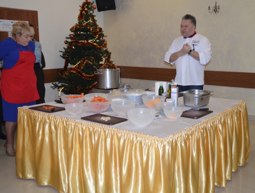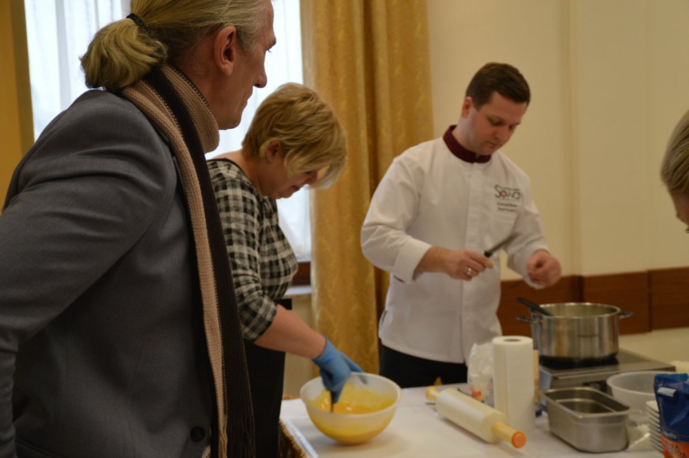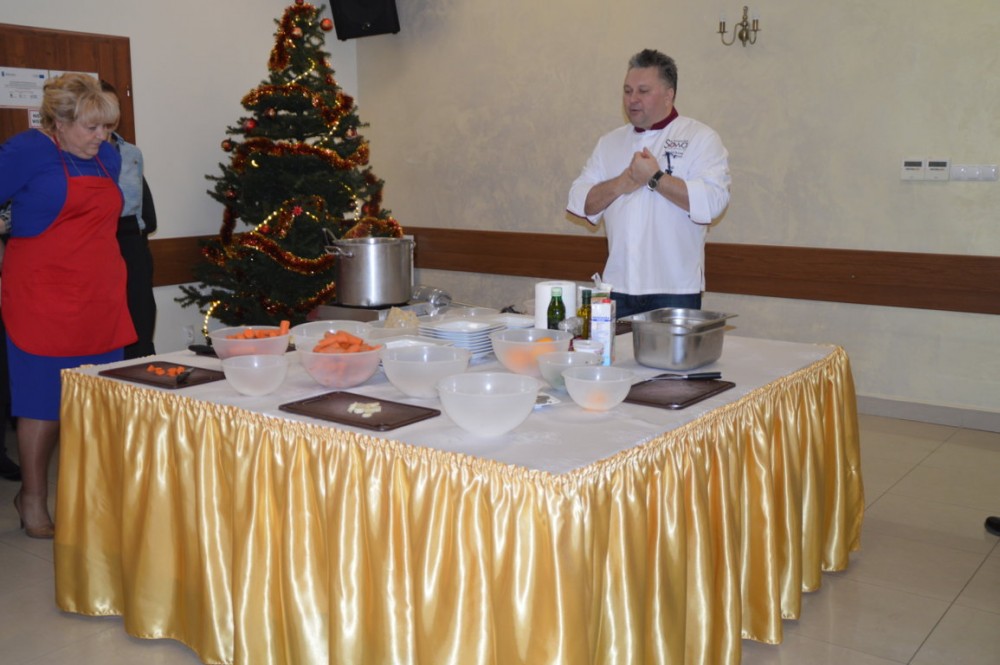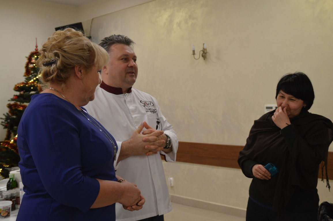 W Lipniaku Sowa przygotowywaÅ‚ m.in. pierÅ› z kaczki z gruszkami i przyprawami korzennymi, zupÄ™ z krewetkami, marynowanego dorsza w sosie ogórkowym oraz pierożki z makiem. We wspólnym gotowaniu z mistrzem wziÄ™li udziaÅ‚ uczestnicy projektu „Stworzenie i wsparcie funkcjonowania ZakÅ‚adu AktywnoÅ›ci Zawodowej w Lipniaku”, pracownicy SOW-y na czele z paniÄ… dyrektor oraz terapeuci z zaprzyjaźnionych oÅ›rodków.