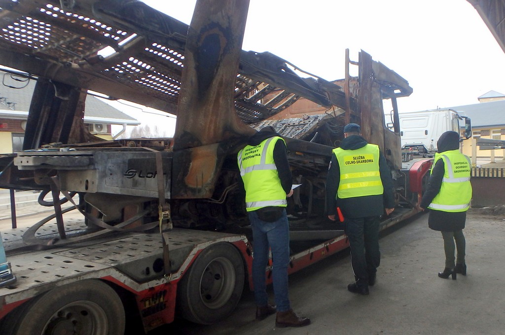 Funkcjonariusze KAS z Budziska zatrzymali do kontroli samochód ciężarowy przewożący z Litwy do Polski spalonÄ… ciężarówkÄ™. Zawiadomieni o zatrzymaniu inspektorzy Wojewódzkiego Inspektoratu Ochrony Åšrodowiska z delegatury w SuwaÅ‚kach potwierdzili, że spalona ciężarówka jest odpadem, na którego wwóz do Polski wymagane jest m.in. specjalne zezwolenie i zgÅ‚oszenie w systemie SENT.