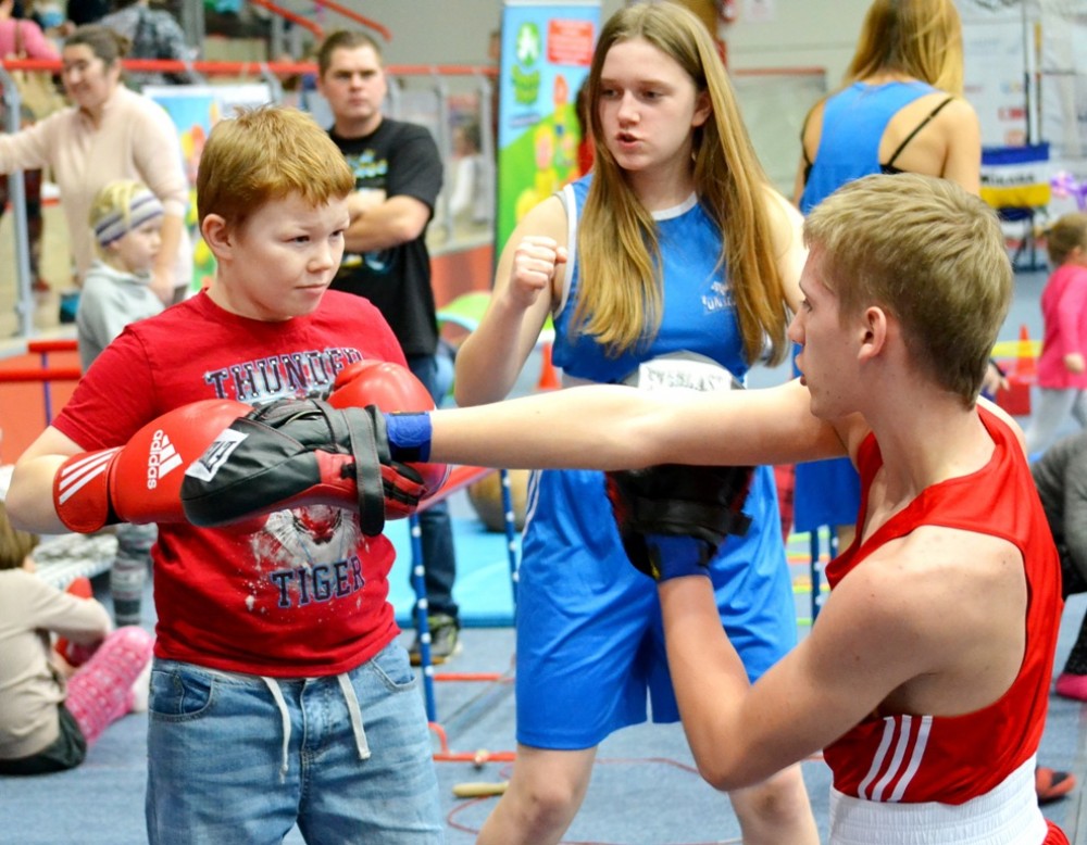 Gry, zabawy, konkursy, sportowe zmagania i ćwiczenia z bokserami OSiR-u, karatekami z SKKK, siatkarzami Ślepska i siatkarkami SALOS-u, piłkarzami Wigier i Akademii Piłkarskiej Wigry Suwałki, przedszkolankami i przedszkolankami z pierwszego w mieście sportowego przedszkola Zielony Zakątek. Do tego oprawa muzyczna bezbłędnie trafiona w gusta dzieci i ... rodziców. Strzałem w przysłowiową dziesiątkę okazało się premiowanie uczestników sportowej rywalizacji „suwalami”, które na koniec imprezy można było w licytacji zamienić na nagrody. Im więcej suwali, tym większe szanse na atrakcyjniejszą nagrodę. A było o co walczyć, bo można było wylicytować zestawy kibica i rodzinne wejściówki na najbliższy mecz siatkarzy I-ligowego Ślepka (sobota, 31.01. g. 17.00) oraz inauguracyjne spotkanie wiosennej rundy piłkarzy I-ligowych Wigier, rodzinne gry planszowe i nie tylko