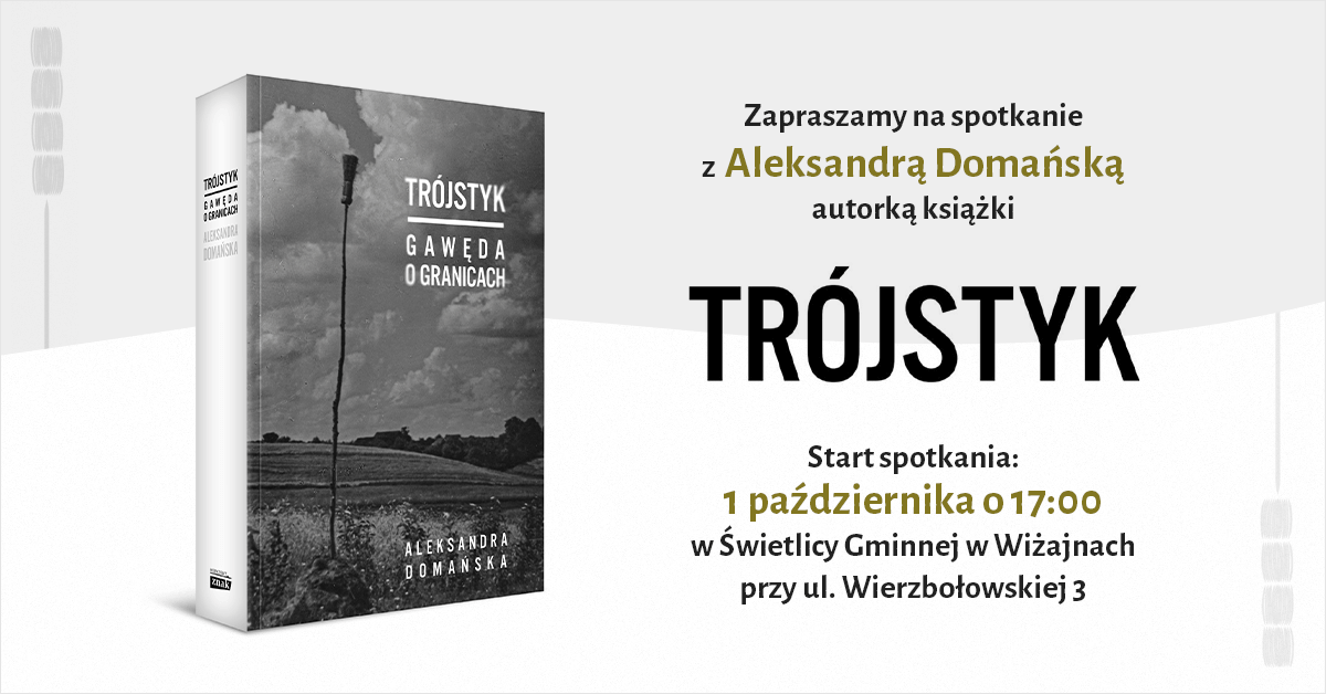 Gminna Biblioteka Publiczna w Wiżajnach i Świetlica Gminna w Wiżajnach zapraszają na spotkanie z autorką książki "Trójstyk: gawędy o granicach" Aleksandrą Domańską.