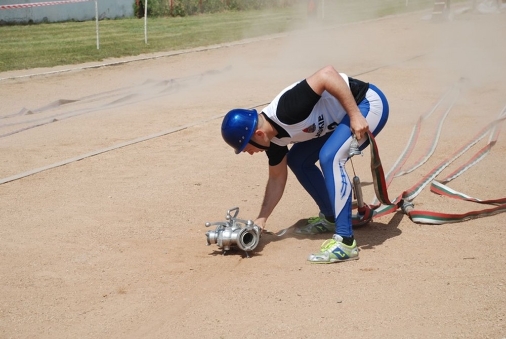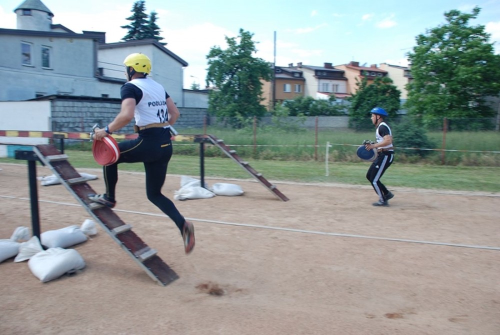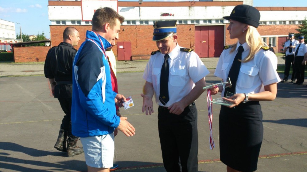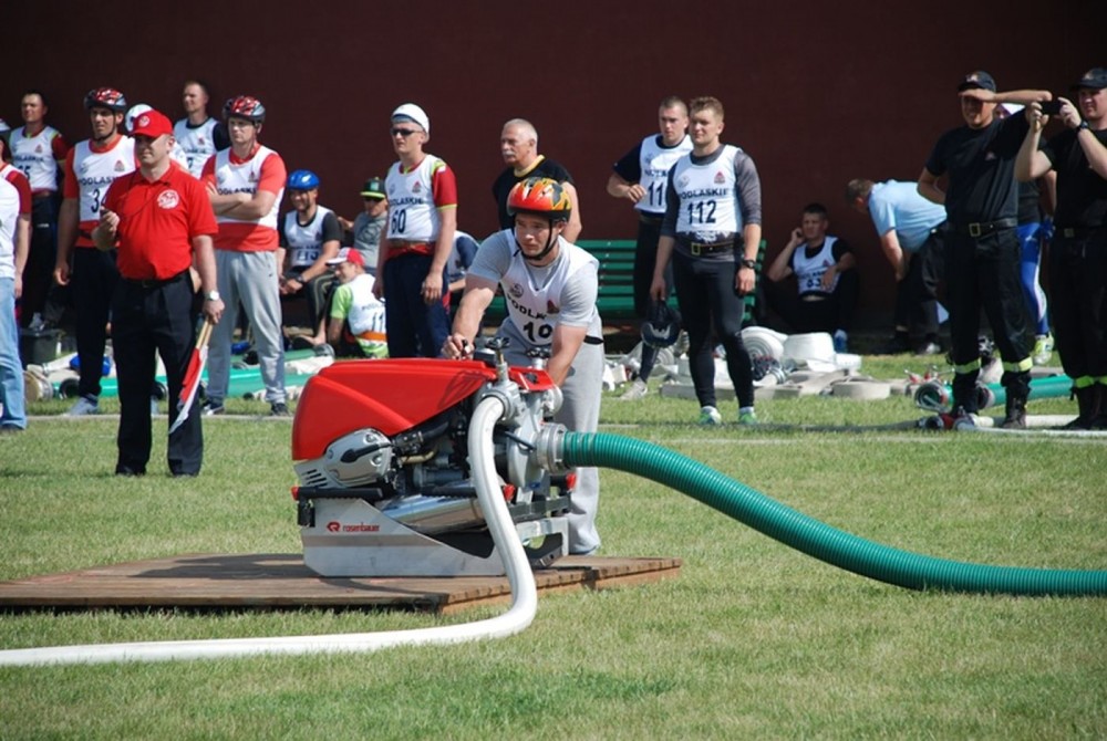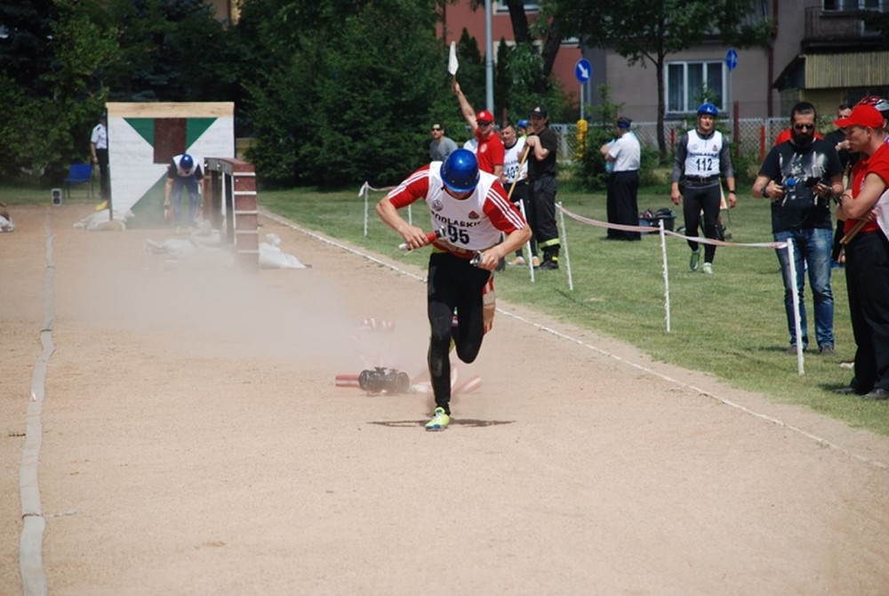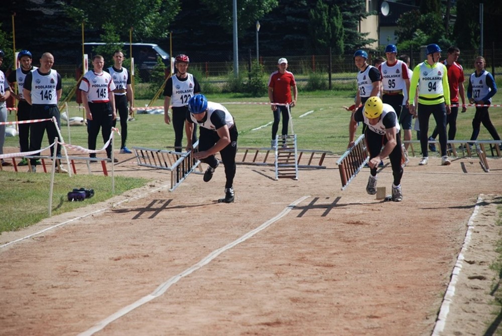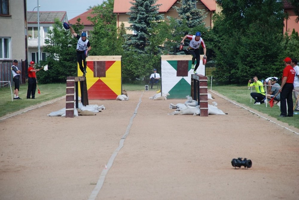 Szymon Sienkiewicz (zdjęcie nr 17) w ciągu 14,93 sek. wspiął się na trzecie piętro przy użyciu drabiny hakowej, a w 17,89 sek. przebiegł stumetrowy pożarniczy tor przeszkód. Uzyskał również najlepszy czas w obu konkurencjach w dwuboju pożarniczym (32,82 sek).
