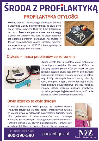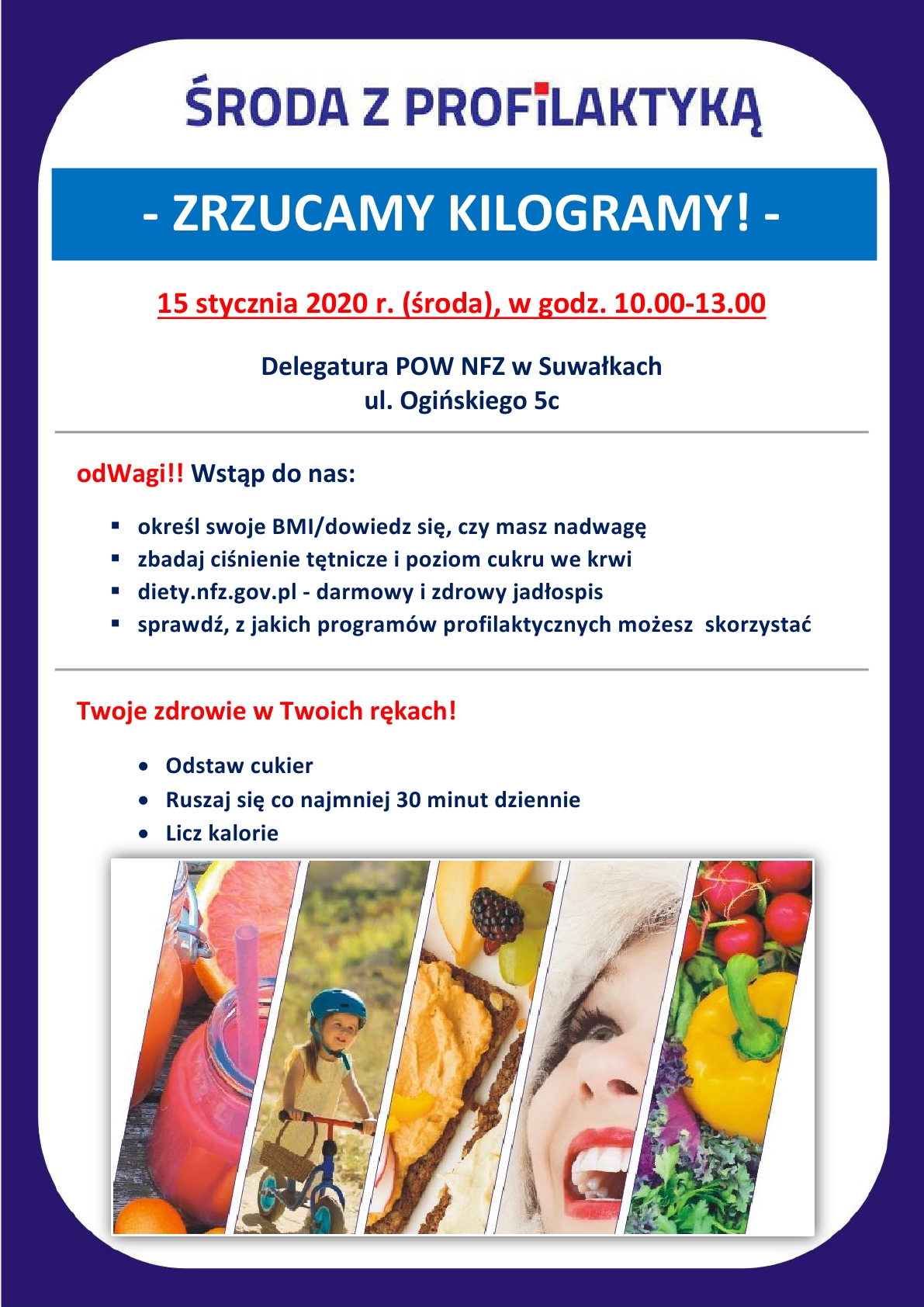 Najbliższa Środa z Profilaktyką poświęcona walce z otyłością odbędzie się w delegaturze NFZ w Suwałkach przy ul.Ogińskiego (na tyłach poczty przy Pułaskiego).