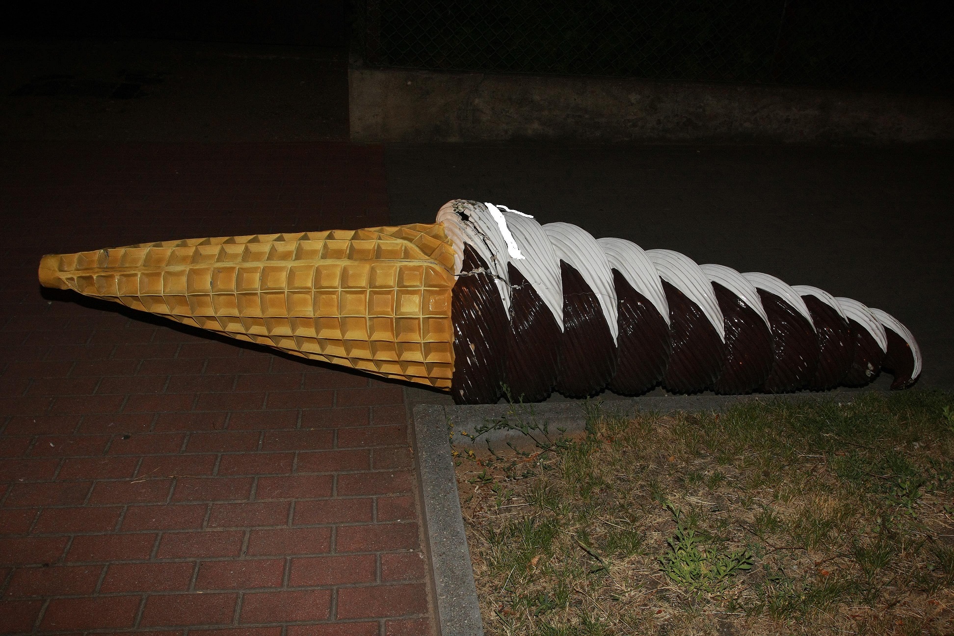 W nocy z poniedziałku na wtorek dyżurny suwalskiej Policji otrzymał informację, że dwóch nastolatków niesie makietę reklamową loda „rożka” i bardzo głośno się zachowuje. Na miejsce natychmiast skierowani zostali funkcjonariusze.