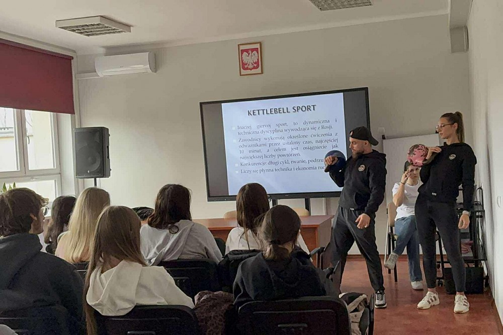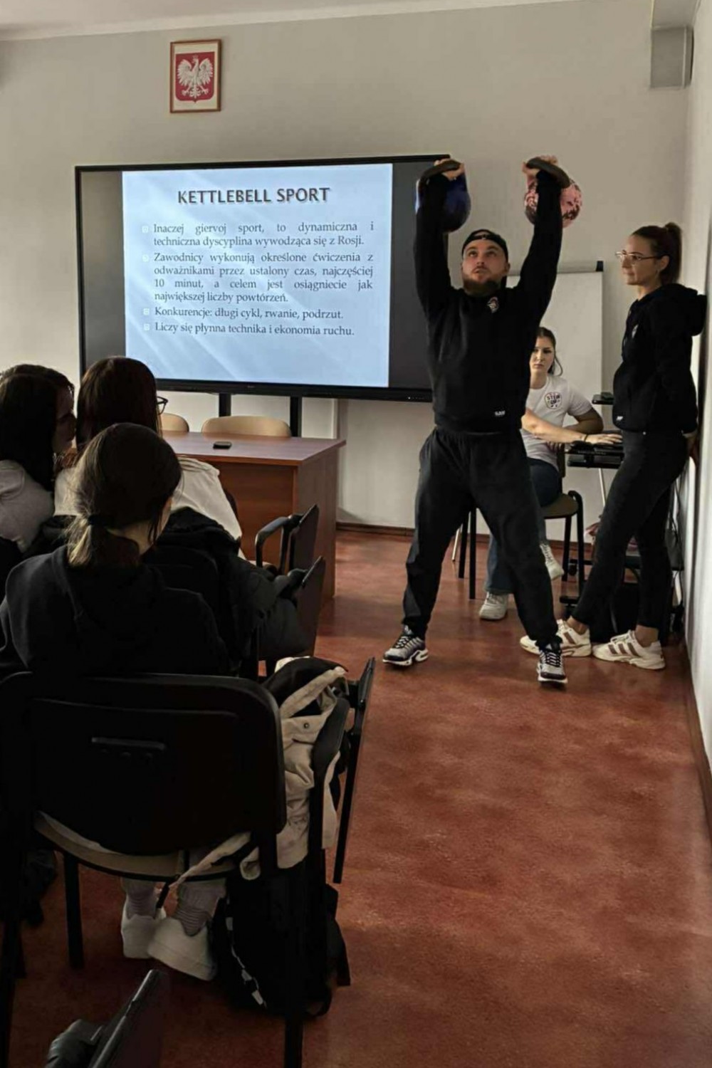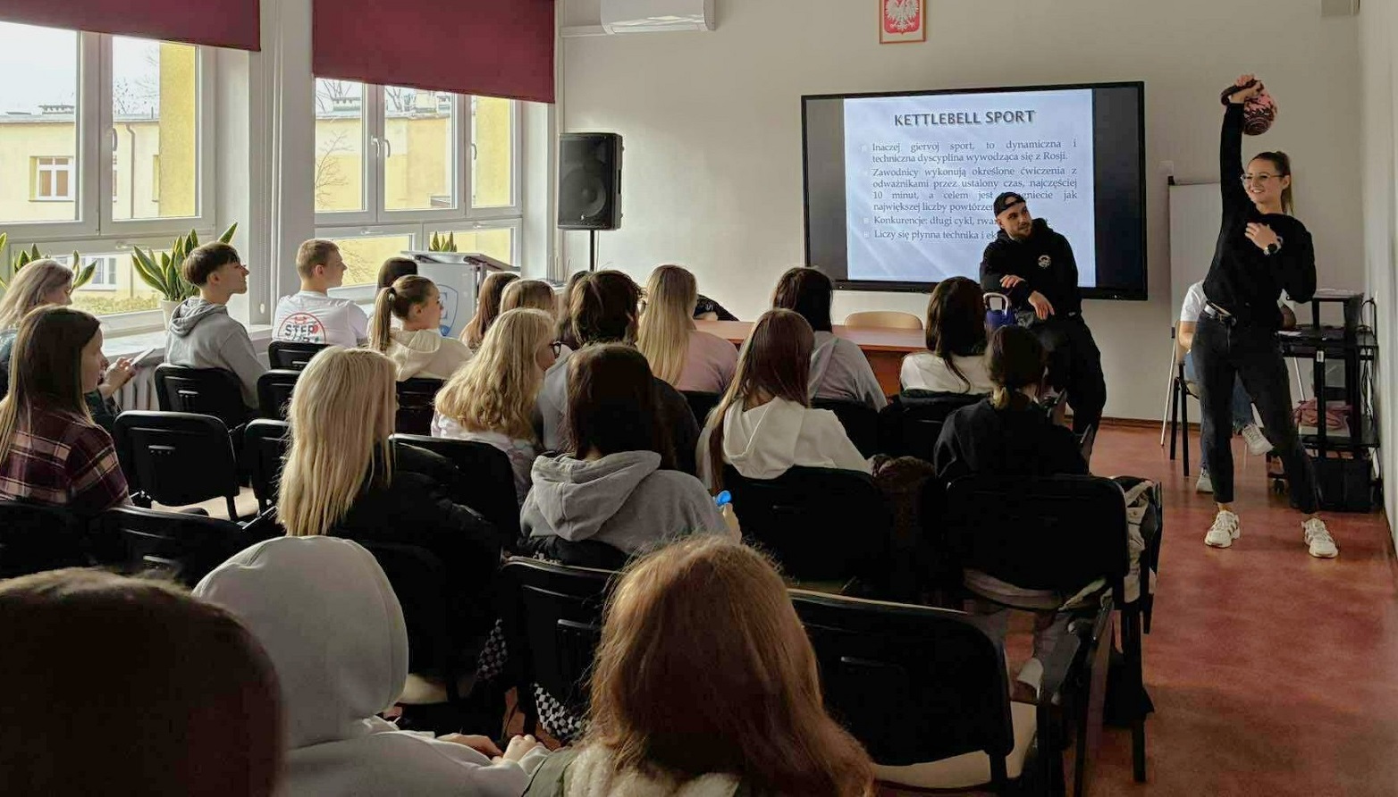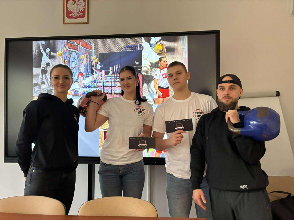 Spotkanie miaÅ‚o również wymiar praktyczny – uczniowie spróbowali swoich siÅ‚ w ćwiczeniach z kettlami. W ramach krótkiej rywalizacji najlepsi zdobyli miesiÄ™czne karnety do klubu Kettebell Jaćwież SuwaÅ‚ki,  który aktywnie promuje kettlebell sport w regionie i zachÄ™ca do aktywnego stylu życia.