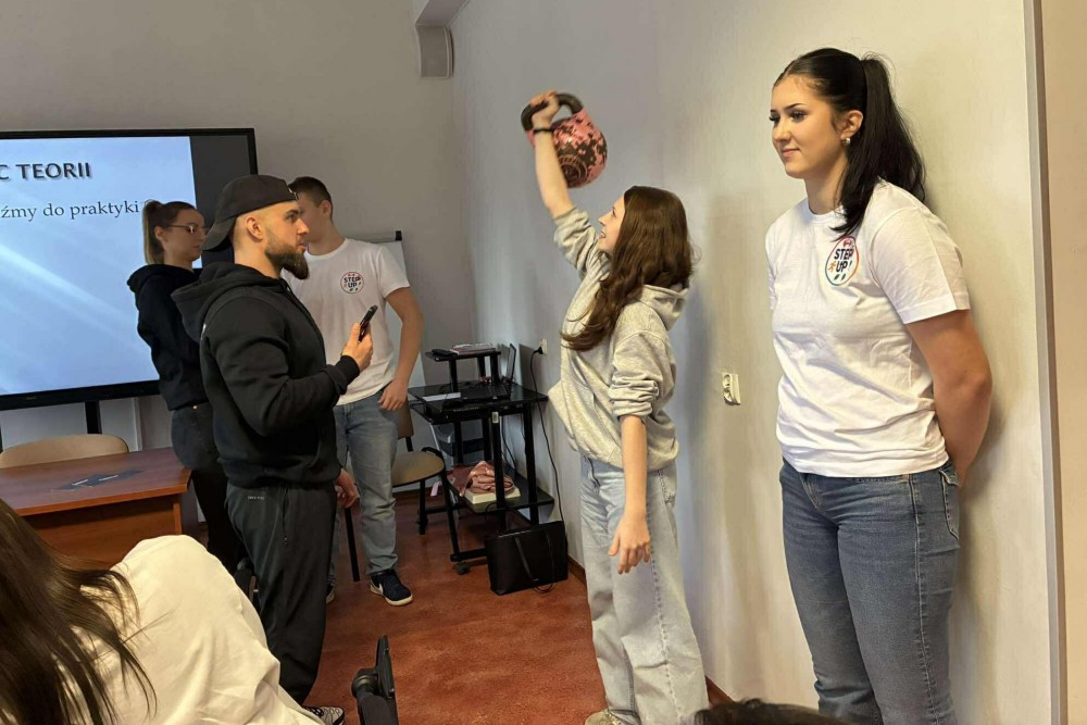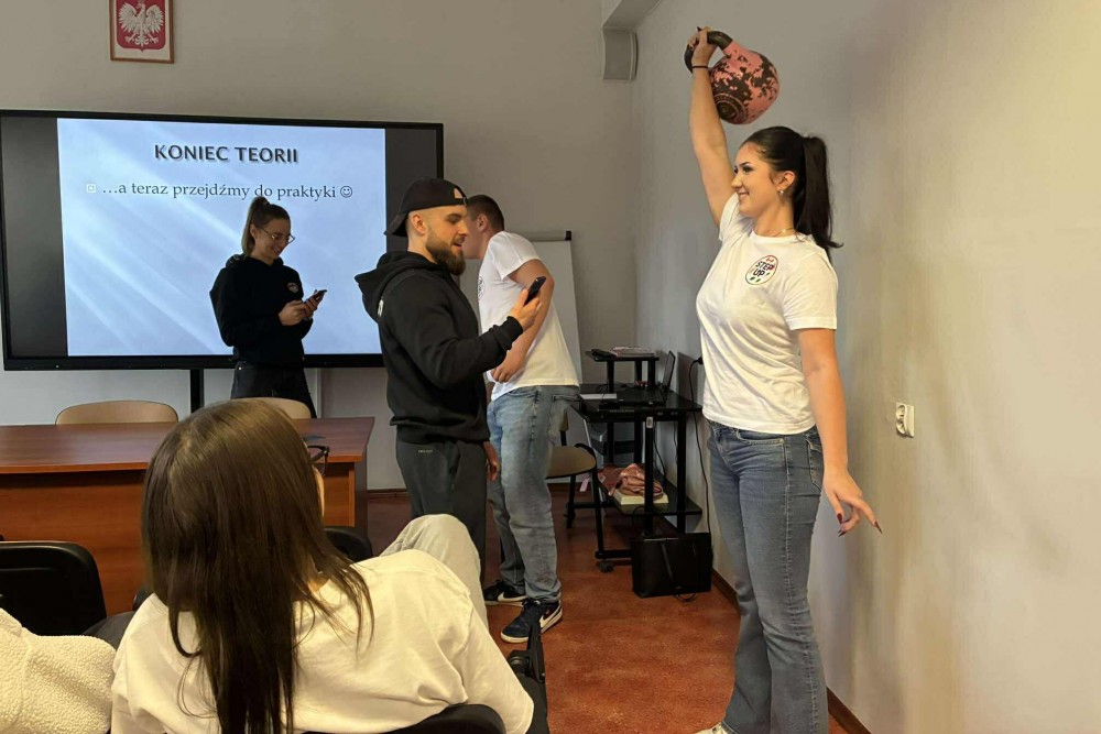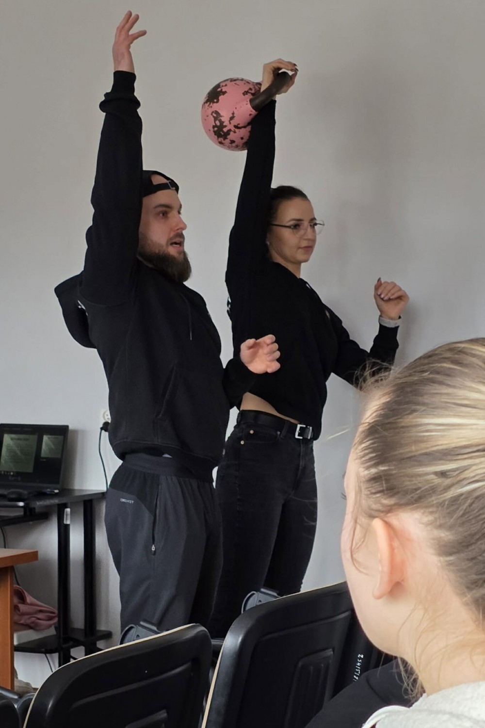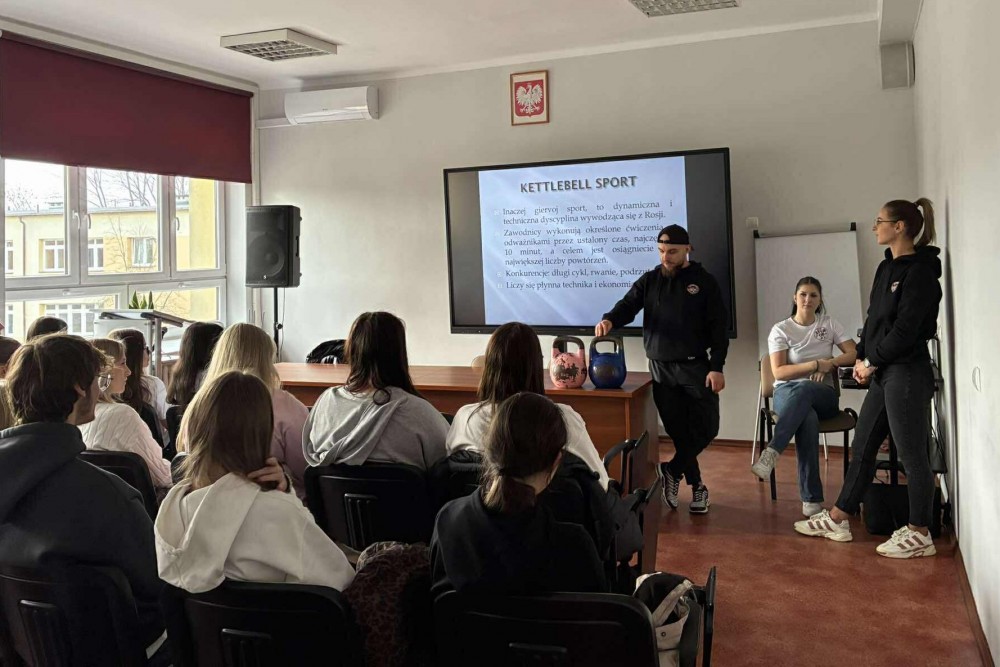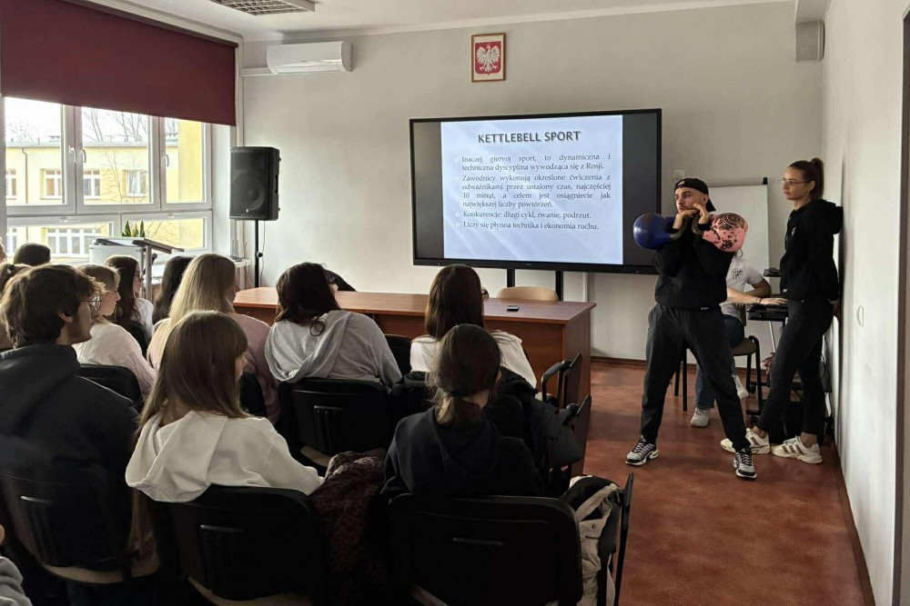 Spotkanie miaÅ‚o również wymiar praktyczny – uczniowie spróbowali swoich siÅ‚ w ćwiczeniach z kettlami. W ramach krótkiej rywalizacji najlepsi zdobyli miesiÄ™czne karnety do klubu Kettebell Jaćwież SuwaÅ‚ki,  który aktywnie promuje kettlebell sport w regionie i zachÄ™ca do aktywnego stylu życia.