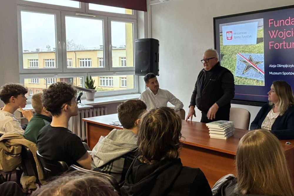 Wojciechowi Fortunie towarzyszyÅ‚ PaweÅ‚ Å»uk, prezes specjalizujÄ…cego siÄ™ w narciarstwie wodnym Uczniowskiego Klubu Sportowego NaWa SuwaÅ‚ki, który przygotowaÅ‚ prezentacjÄ™ ze zdjÄ™ciami z mÅ‚odoÅ›ci mistrza olimpijskiego, przybliżajÄ…c uczniom poczÄ…tki jego kariery.