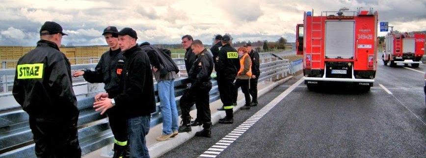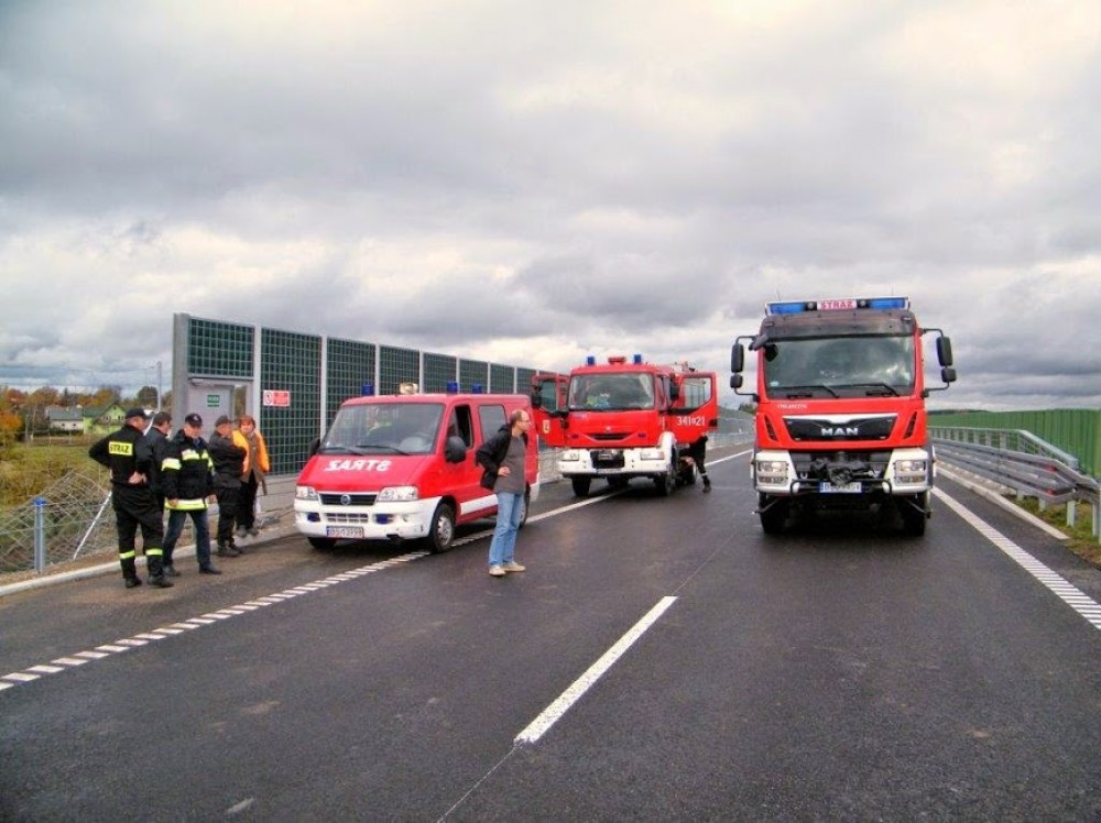 Strażacy Obwodnicę Augustowa oglądali przez dwa dni. Przejechali odcinek od granicy powiatu augustowskiego do węzła Lotnisko. Ćwiczyli rozbieranie barier i zamykanie odpływu wody deszczowej. Testowano też jak sprowadzają się wyjścia ewakuacyjne z drogi przez bariery.