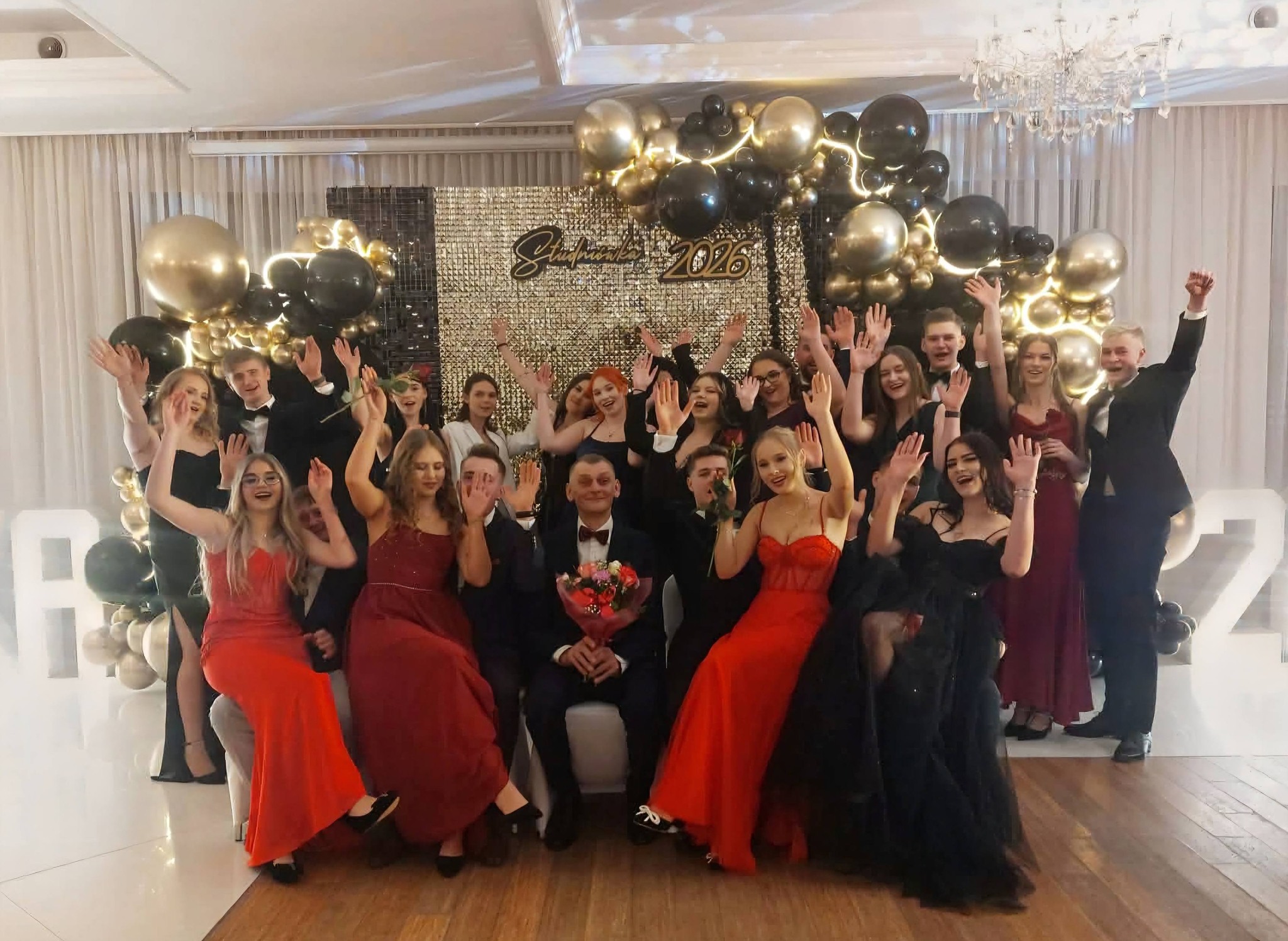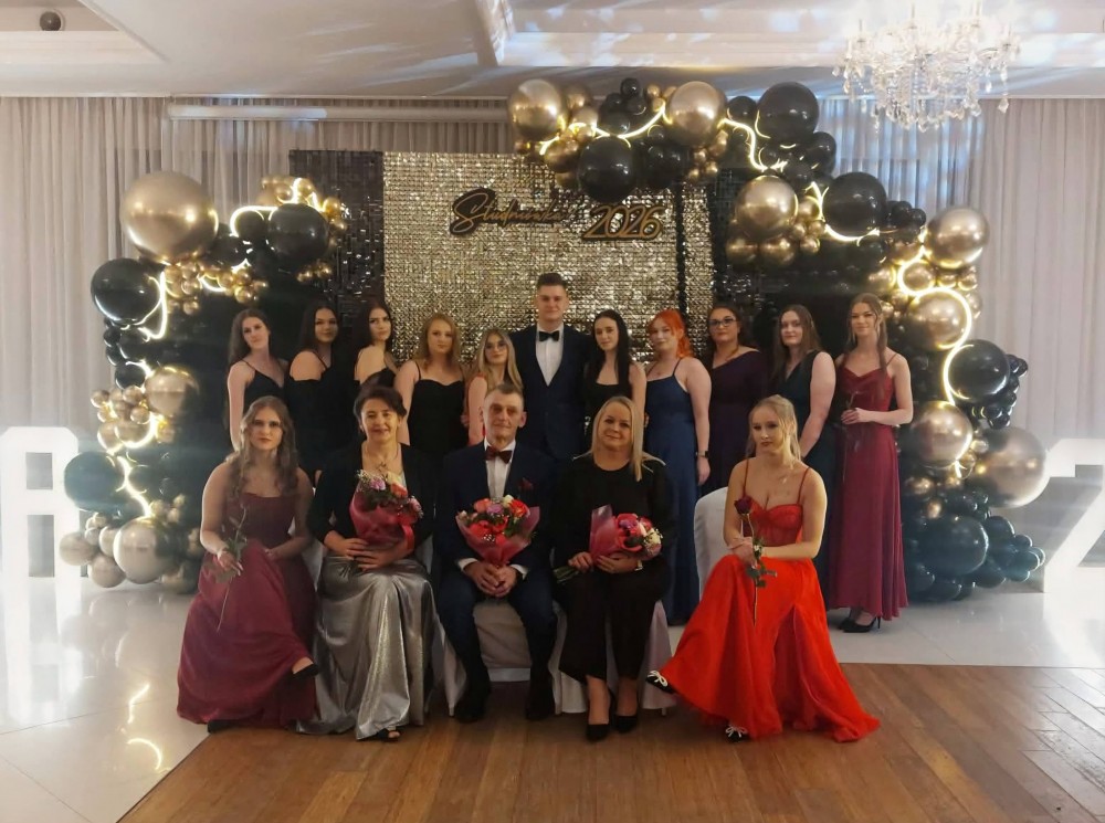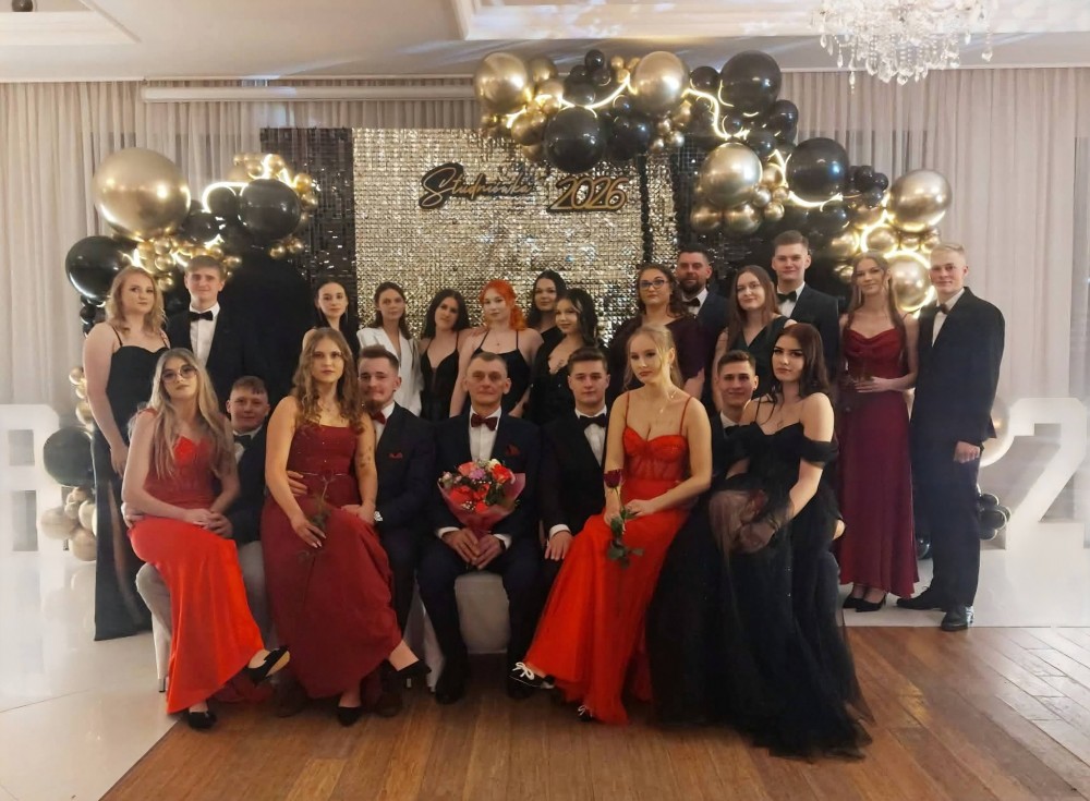 A tak, niżej na zdjÄ™ciach wyglÄ…dali wspaniali maturzyÅ›ci, wychowawcy, dyrekcja, nauczyciele oraz rodzice i osoby towarzyszÄ…ce na balu studniówkowym 2026 r.