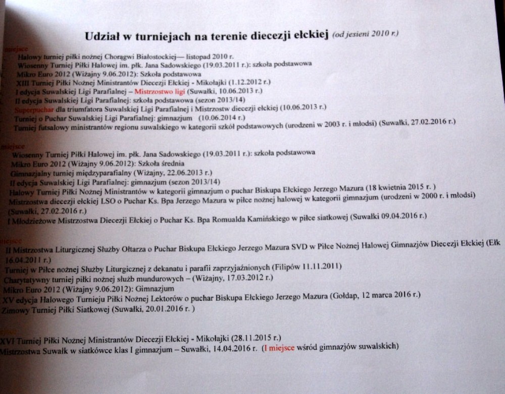 Mieliśmy mistrzostwa diecezji w siatkówce, gdzie mój zespół zajął drugie miejsce, a w jednym z portali w tytule napisano kto wygrał, a pod spodem umieszczono zdjęcie mojej drużyny... Komentarz zostawiam fachowcom, dziennikarzom...