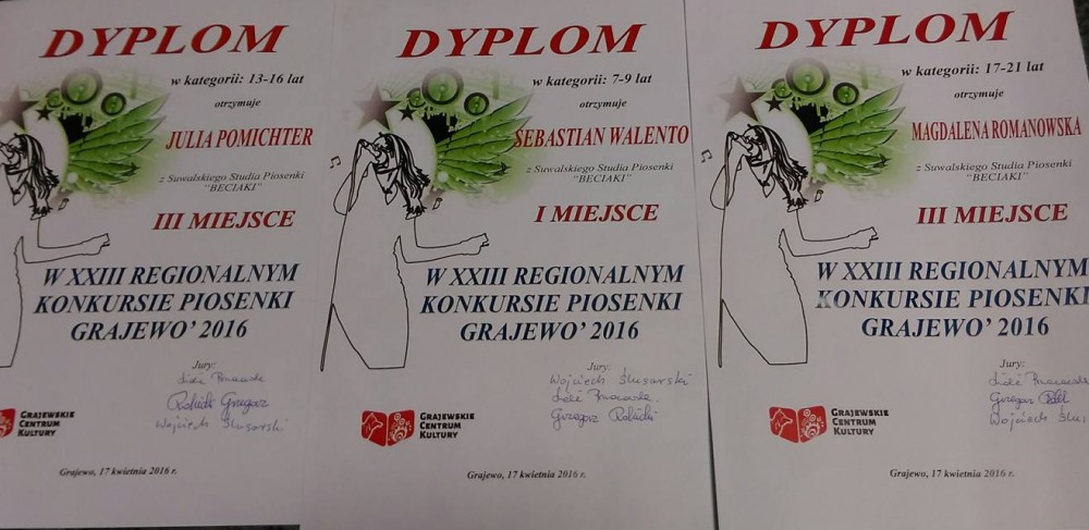 Podopieczni Marka Zborowskiego-Weychmana wystąpili na XXIII Regionalnym Konkursie Piosenki w Grajewie. Odnieśli duży sukces.