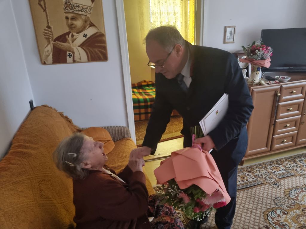 Wanda Martynko obchodziła w niedzielę (4 grudnia) setne urodziny. Z tej okazji odwiedził ją Czesław Renkiewicz, prezydent Suwałk by przekazać życzenia oraz drobny prezent.