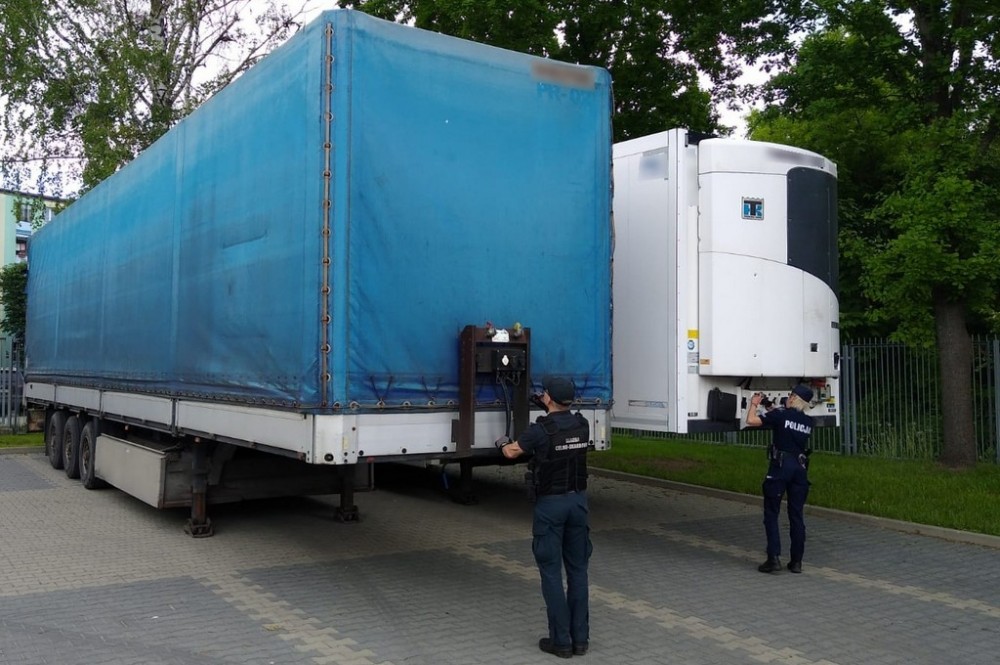 - Podczas sprawdzania znajdujących się na placach pojazdów okazało się, że jeden z ciągników siodłowych oraz dwie naczepy figurują w policyjnych bazach jako utracone na terenie Unii Europejskiej. Dodatkowo w kolejnych dwóch naczepach mundurowi stwierdzili rozbieżności pomiędzy numerami VIN wybitymi na ramach, a znajdującymi się na tabliczkach znamionowych - informuje Krajowa Administracja Skarbowa w Białymstoku.