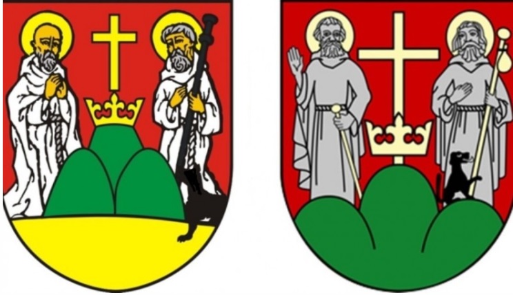 Do ratusza zostaÅ‚y już dostarczone Å‚aÅ„cuchy z nowym - starym herbem, którego projekt zaakceptowaÅ‚a Komisja Heraldyczna przy Ministerstwie Spraw Wewnetrznych i Administracji. Od obecnego różni siÄ™ sylwetkami Romualda i Rocha, nie ma piasku, sÄ… tylko trzy wzgórza, inaczej jest zwrócona gÅ‚owa psa, w innym miejscu umieszczona korona.