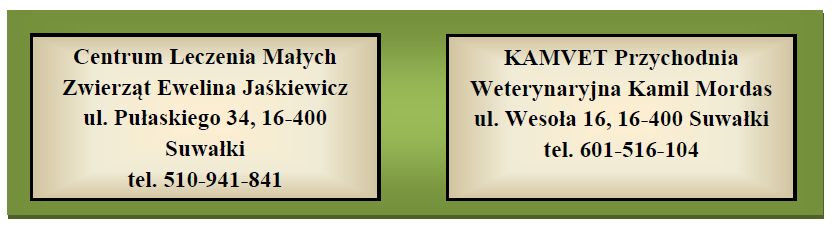 Zabiegi przeprowadzane będą w poniższych lecznicach weterynaryjnych na terenie Suwałk: